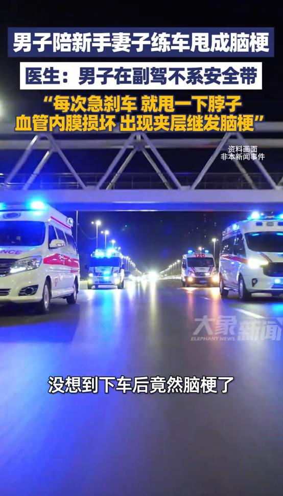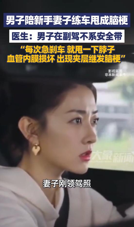 “太吓人了!”河南郑州,一女子刚领驾照,她的丈夫坐副驾陪她练车,因为没系安全带,女子每次急刹车一下他都要甩一下脖子,导致血管内膜损坏,下车后发现身体不对劲,去医院检查竟确诊为脑梗!网友:万万没想到啊! 事情是这样的,郑州有位女子刚领了驾照,新手上路心里肯定没底,她丈夫就主动坐进副驾,陪着她练车,想着能多照应着点,也能帮着指导指导,这本是件挺暖心的事,谁也没料到,最后会酿成这样的后果。 这位丈夫今年三十多岁,平时身体挺硬朗,没有高血压、糖尿病这些基础病,怎么看都和脑梗这种重症扯不上关系,他坐副驾的时候,可能是觉得市区练车车速不快,又是短途,抱着侥幸心理,全程都没系安全带。 大家都知道,新手司机上路,难免会紧张,遇到点路况变化就容易慌神,这位女子也不例外,练车的时候,只要看到前方有情况,就下意识地猛踩急刹车。 每次急刹车,没系安全带的丈夫,身体就会因为惯性往前猛冲,头和脖子也跟着剧烈甩动一下,一开始,他也没太在意,就觉得脖子有点轻微酸胀,以为就是甩得有点累,歇会儿就好了。 可等练完车下车后,他就明显感觉身体不对劲了,说话也变得含糊不清,肢体也有些僵硬,整个人都提不起劲,家人一看情况不对,赶紧把他送进医院检查,结果出来后,所有人都懵了,竟然确诊为脑梗。 好好的一个人,陪妻子练个车,怎么就突然脑梗了?医生后来解释说,问题就出在没系安全带上,男子本身没有基础病,之所以会得脑梗,就是因为副驾没系安全带,妻子每次急刹车,他的脖子都会被猛甩一次。 反复的外力冲击,导致颈部血管内膜受损,出现了血管夹层,进而引发血栓,堵塞了脑血管,最终导致了脑梗。 现在很多人都有个误区,觉得只有上高速才需要系安全带,市区低速行驶系不系都无所谓,可这起事件就给大家敲了个警钟,低速行驶时,惯性的力量也不容小觑。 咱们可以设想一下,要是当时这位丈夫系上了安全带,急刹车的时候,身体被牢牢固定在座椅上,脖子就不会被反复猛甩,也就不会出现血管受损的情况,更不会患上脑梗。 一次小小的疏忽,就给身体带来了无法挽回的伤害,也打乱了一家人的正常生活,这件事传开后,网友们都炸开了锅,有人说自己坐副驾也经常不系安全带,现在想想都后怕。 其实不管是主驾还是副驾,不管是高速还是市区,只要上车,就一定要系好安全带,它不是摆设,关键时刻能救命,甚至能避免像这样的意外发生,希望大家都能从这件事里吸取教训,别再抱着侥幸心理,安全出行才是最重要的。