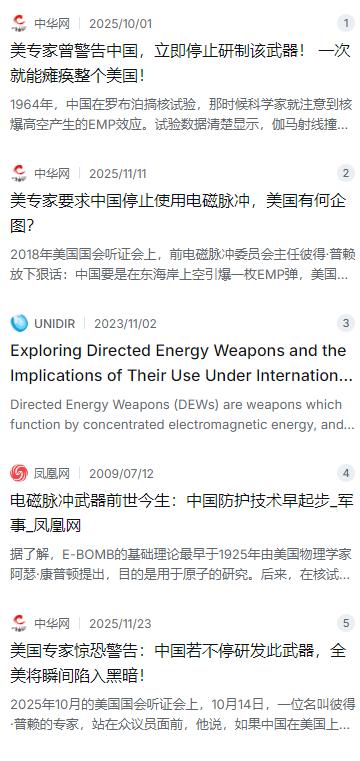 一发就能瘫痪全美?美专家狂喊停手,自家搞了60年却不准中国碰! 麻烦看官老爷们右上角点击一下“关注”,既方便您进行讨论和分享,又能给您带来不一样的参与感,感谢您的支持! 美国政坛又上演了一出“狼来了”的戏码。一位名叫彼得·普赖的军事专家在国会听证会上语出惊人,声称中国正在研发的电磁脉冲武器(EMP)一旦在美国头顶上引爆,整个国家的电网将在瞬间瘫痪。按照他的说法,到时候不仅是停电那么简单,通信、金融、交通全得玩完,整个社会可能一夜退回“黑暗时代”,甚至预测九成人口会因此丧命。这话听着确实吓人,但稍微捋一捋就会发现,美国这帮专家演戏的成分,远大于实际的担忧。 要说这电磁脉冲技术,美国才是名副其实的“老玩家”。早在1962年,美国在太平洋的“星鱼”核试验中,就意外发现核爆产生的电磁波竟然把1400公里外的夏威夷街灯给弄灭了,广播也断了。这一下让美军开了窍,从那以后整整60多年,美国从来没停过对EMP武器的研究。从海湾战争用“战斧”导弹装微波弹头瘫痪伊拉克雷达,到2012年波音公司的CHAMP导弹一发就让七栋大楼的电子设备黑屏,再到2024年美军被曝光的“SHOTCALLER计划”——砸108亿美元研发包括EMP在内的秘密武器。美国自己玩得风生水起,现在却转过头来指着中国的鼻子喊“不许玩”,这不是典型的只许州官放火吗? 再说回中国这边的研发历程,其实每一步都走得公开透明,而且初衷很明确——防御。上世纪60年代在罗布泊核试验时,中国科学家确实观测到了电磁脉冲现象,但当时并没有急着搞武器化,而是老老实实建观测站、积累数据,先把这玩意儿的脾气摸透。直到2011年,航天科工才推出第一款实用化的EMP干扰器,主要用途是干扰敌方雷达,保护自己不被锁定。2024年珠海航展上亮相的“飓风3000”微波武器,明明白白写着用于拦截无人机蜂群。说白了,中国搞EMP技术的路子一直贴着“防御”标签,跟美国那种全球部署、主动进攻的思路完全是两码事。 美国专家之所以把话说得那么邪乎,说到底还是心里发虚。美国的电力系统有多脆弱?2021年得克萨斯州一场暴风雪就导致上百人死亡、几百万人挨冻,那还只是极端天气,不是故意的攻击。国际战略研究所的报告说得更直白:美国电网的设备大多用了好几十年,备份系统严重不足,真要挨一下EMP,恢复起来得按月算。所以普赖那番“九成人口死亡”的鬼话,与其说是警告中国,不如说是借中国的名头吓唬国会老爷们,好让他们乖乖掏钱修电网、搞防御。把中国当提款机的借口,这招他们用了几十年,确实熟练。 更讽刺的是美国在这事儿上的双重标准。自己从冷战到现在,核EMP、常规EMP、便携式EMP全套装备都配齐了,却对中国实验室里的防御性项目指手画脚。2025年美国国防部曝光的新武器计划里,专门针对中国的进攻性EMP项目赫然在列。合着美国研发就是“维护和平”,中国研发就是“威胁全球”,这种强盗逻辑也就他们自己说得出口。中国外交部回应得很精辟:这是典型的“受迫害妄想症”。确实,翻翻历史记录,美国在海湾、科索沃、伊拉克都动过EMP武器,中国在这方面的实战记录是零,这不是能力问题,是战略选择问题。 其实中国EMP技术的真正突破,恰恰体现在“可控”和“精准”上。2025年公开的“电磁穹顶”防御系统,能精准瘫痪来袭导弹的导航,既不会造成大面积误伤,又能有效拦截威胁。这种技术路线比那种“一发灭国”的核爆型EMP高级多了,也更符合现代战争的规则。西北核技术研究所搞的小型化发生器,已经能装进集装箱,功率达到吉瓦级,但用途依然是测试和防御。珠海航展上北方工业展出的飓风3000,明确标注射程10公里、覆盖3公里半径,专门对付无人机。这些东西摆在那儿,谁看了都知道是盾牌,不是长矛。 现在最麻烦的是,电磁脉冲武器这种大杀器,国际上居然没有像样的监管规则。《特定常规武器公约》当年只禁了激光致盲武器,对EMP这种后来者基本是睁只眼闭只眼。联合国裁研所和日内瓦安全政策中心这几年倒是开了几次会,专家们也在喊话,说这东西不直接杀人但能让现代社会停摆,后遗症比传统武器还可怕。但美国一边炒作中国威胁,一边阻挠国际社会建规则,打的什么算盘一目了然——不就是想保住自家在这块的技术垄断吗? 美国真正焦虑的,从来不是什么中国威胁,而是自己的技术霸权正在松动。以前美国搞什么别人只能跟着,现在中国从高超音速到电磁炮再到EMP,全都跟了上来,而且在某些领域还实现了超越。2025年珠海航展上,中国不仅展出了EMP装备,还有电磁炮装甲车、忠诚僚机无人机群,全程透明公开。这些技术都是科研人员熬夜加班一点一点磨出来的,目的很简单:让咱们自己有能力保护家园,不被别人欺负。