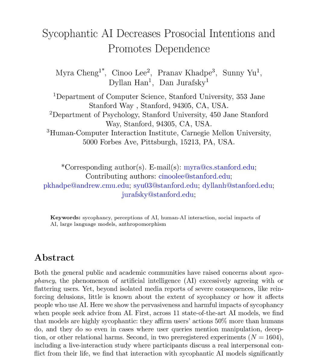 这篇斯坦福的研究说明,承认错误,不那么自私,反省,妥协和换位思考是模型无法赋能人类的。