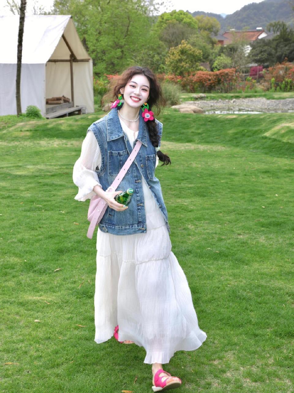 阳光明媚的午后,时尚穿搭与花海相伴,尽显青春活力!🌞💃🌸活力穿搭