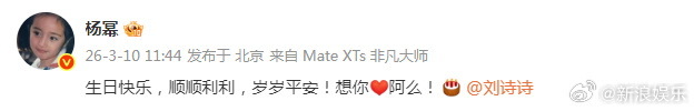 杨幂连续五年为刘诗诗庆生杨幂为刘诗诗庆39岁生日 刚刚,卡点11:44发文为庆生:“生日快乐,顺顺利利,岁岁平安!想你阿么!”连续五年准时送祝福,诗幂的神仙友谊太好磕啦~杨幂卡点1144为刘诗诗庆生