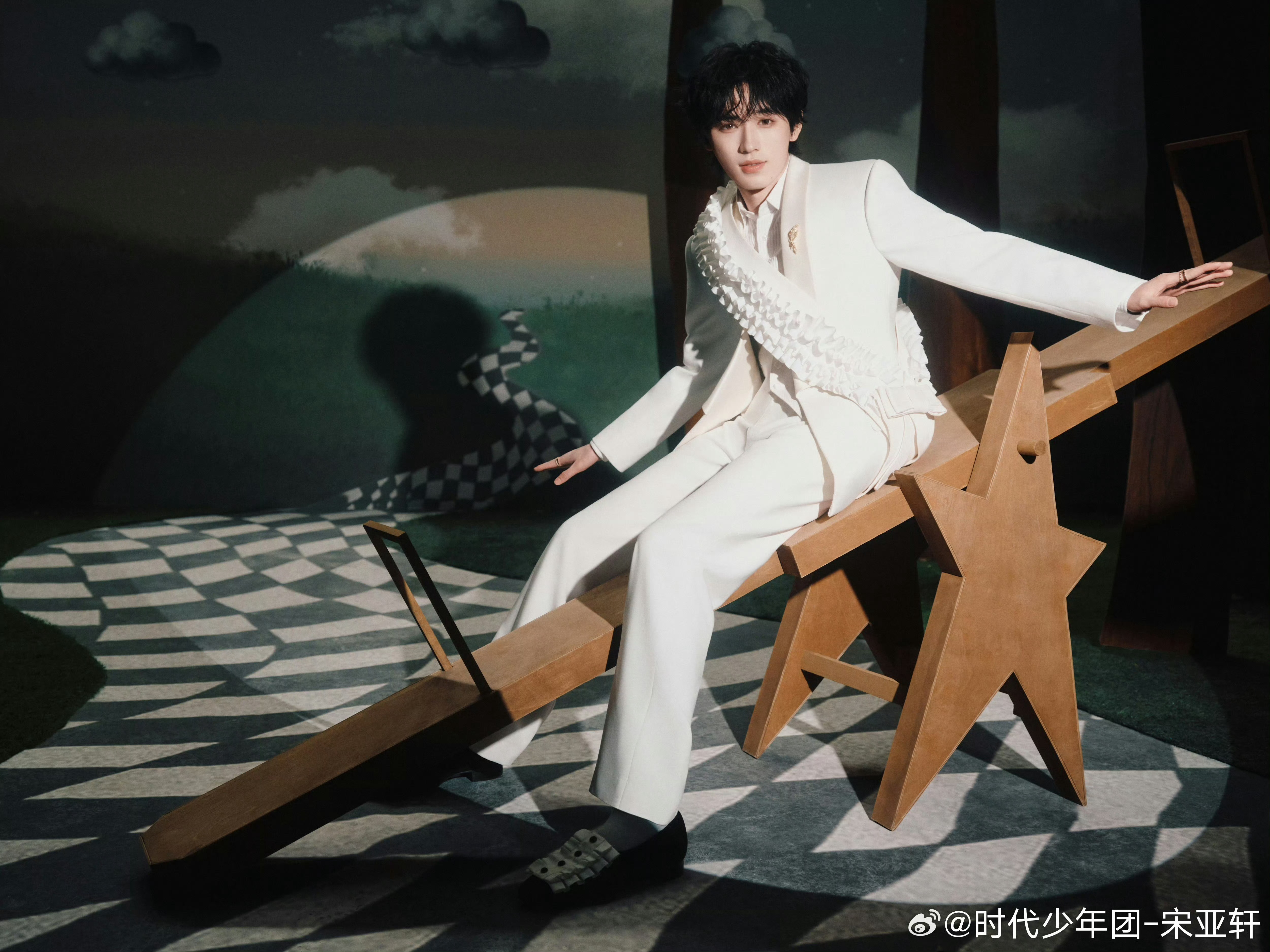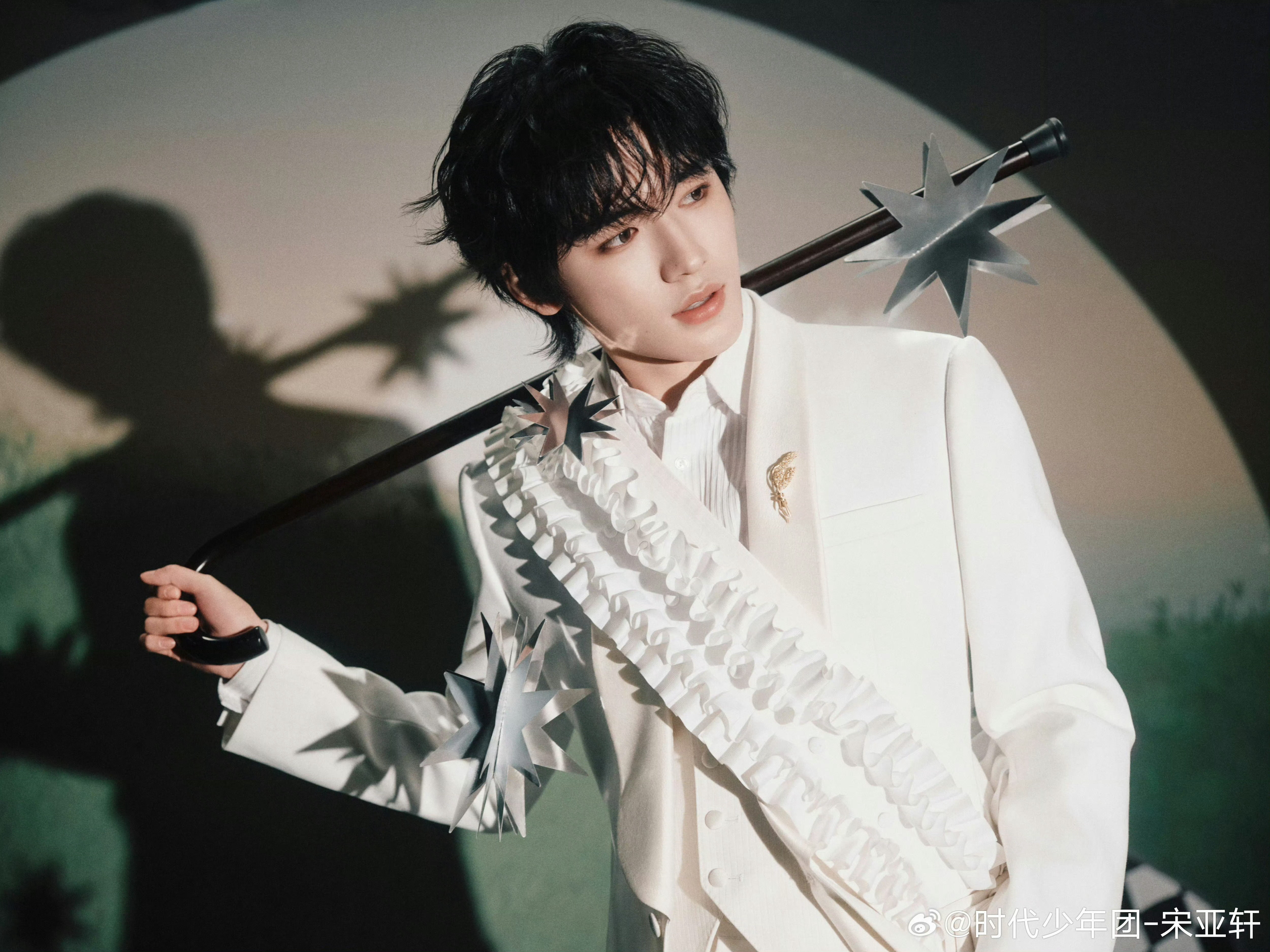 宋亚轩白西装魔法师造型宋亚轩星芒权杖概念照宋亚轩全新概念照公开,白西装搭配礼帽