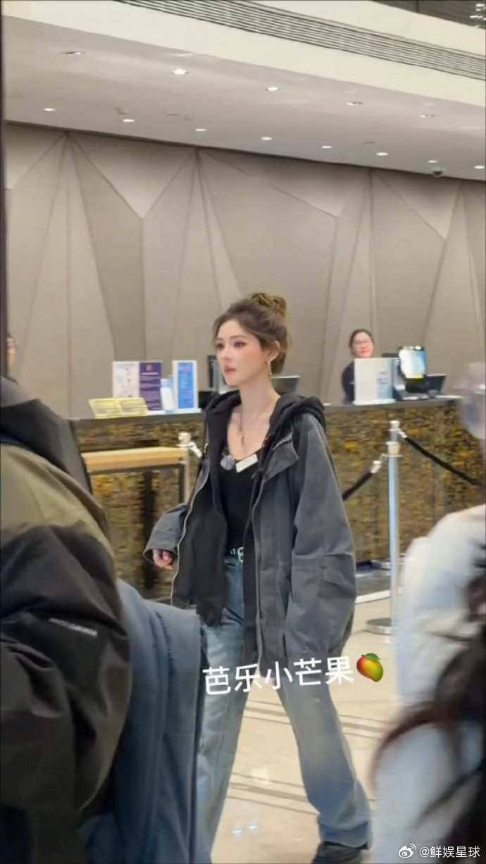刘亦菲这条裤子挺养生,毕竟降温了肚脐眼必须护住啊
