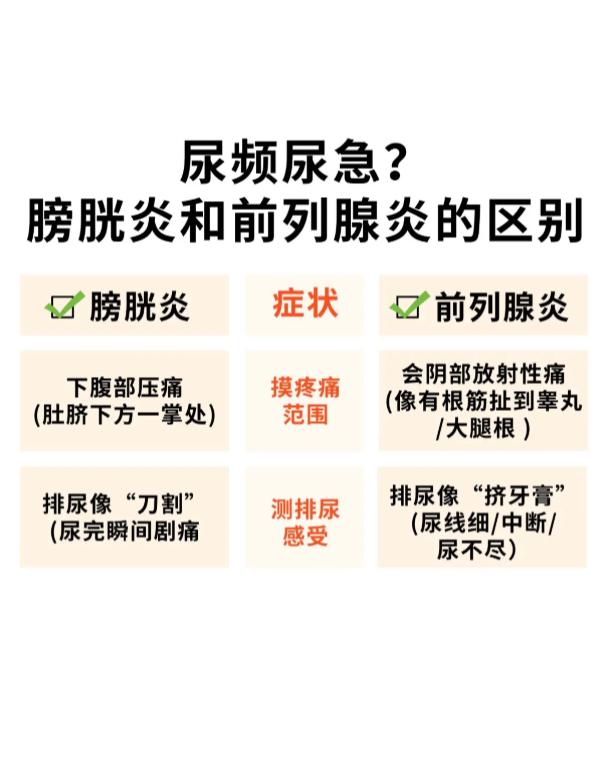 出现尿频尿急,如何区分膀胱炎与前列腺不适?