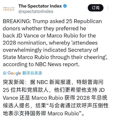 据NBC新闻报道,特朗普询问25位共和党捐款人,他们更希望他支持副总统JD 万斯还是马尔科·鲁比奥获得2028年总统候选人提名,结果“与会者通过欢呼声压倒性地表示支持国务卿马尔科·鲁比奥”。 JD万斯现在是美国副总统,跟着特朗普做事,之前还当过参议员,写过一本叫《乡下人的悲歌》的书,算是有点名气,也一直跟着特朗普的思路走,之前还公开认错,说自己以前批评特朗普是错的。 而马尔科·鲁比奥,现在是美国国务卿,手里管着美国的外交大事,他本身就是古巴裔,在佛罗里达的古巴裔社区很有影响力,而且早就得到过共和党捐款人的资助,2016年竞选的时候就有亿万富翁帮他出钱。 会议上,当特朗普问出这个问题后,在场的25位捐款人,通过欢呼声表达了自己的态度,而且是压倒性地支持鲁比奥。 这一下,不少人就觉得,特朗普这是定调了,以后会全力支持鲁比奥,鲁比奥成为2028年共和党总统候选人的希望大增。但其实,大家根本不用当真,特朗普这番征询意见,看似是给鲁比奥站台,实则根本作不得数,就是走个过场,顺着捐款人的意思来罢了。 为啥说作不得数?最关键的一点,就是特朗普这个人,向来反复无常,没有固定的政治立场,说过的话、承诺过的事,转头就可能反悔,这可不是瞎编,都是有实实在在例子的。 就拿最近来说,2026年3月,特朗普针对中东战争的表态,一天之内就变了好几次,早上还说“战争几乎已经全部结束了”,晚上就改口说“我们赢得还不够”“本周不会结束”,连美国的媒体都看懵了,不知道他到底想说啥。 再往前看,特朗普对拉美裔的态度更是出尔反尔。以前他天天骂墨西哥裔是“强奸犯”,还说要在美墨边境建围墙,让墨西哥出钱,要大量遣返拉美裔非法移民。 可后来为了拉选票,他又发推说“我爱拉美裔”,还晒出自己吃墨西哥食物的照片,装出很亲近拉美裔的样子,可实际上,大多数拉美裔选民根本不喜欢他。他自己写的书《交易的艺术》里,甚至直接说“我经常会出尔反尔”,可见这种反复无常,就是他的行事风格。 还有对万斯的态度,特朗普也变过好几次。2025年8月,他还明确说,副总统万斯“最有可能”成为他的接班人,是2028年共和党总统候选人的最佳人选,甚至提议万斯和鲁比奥搭档竞选。可才过了几个月,他就又找捐款人征询意见,看大家支持万斯还是鲁比奥,这就足以说明,他心里根本没有固定的人选,全看当时的形势。 而且,特朗普这次征询捐款人意见,说白了就是顺势而为,讨好这些捐款人罢了。大家都知道,美国的政治竞选离不开钱,这些捐款人都是共和党里的金主,手里握着大量资金,能给特朗普和他支持的候选人提供资金支持。 比如亿万富翁阿德尔森夫妇,2024年就给特朗普的竞选团队捐了超过1亿美元,之前也给鲁比奥的竞选捐过钱。特朗普心里很清楚,想要继续在共和党里有话语权,想要以后能继续影响选举,就不能得罪这些捐款人。 现在这些捐款人都欢呼支持鲁比奥,特朗普自然要顺着他们的意思,表现出重视他们意见的样子,可这并不代表他真的会一直支持鲁比奥。 距离2028年总统选举还有两年时间,这两年里,美国的政治形势会发生很多变化,捐款人的态度也可能改变,说不定到时候,捐款人又支持别人了,特朗普也会跟着改口,转而支持另一个人。 还有一点,鲁比奥虽然现在得到了捐款人的支持,但特朗普向来只看利益,谁对他更有利,他就支持谁。 鲁比奥现在是国务卿,手里有权力,也有捐款人的支持,特朗普暂时讨好他、顺着捐款人的意思,是为了自己的利益。 可如果以后鲁比奥的影响力下降了,或者有更合适、对他更有利的人选出现,特朗普肯定会毫不犹豫地抛弃鲁比奥,转而支持别人,这种事情,他以前可没少做。 可能有人会说,特朗普是共和党里的关键人物,他的支持很重要,只要他表态支持鲁比奥,鲁比奥就稳了。但实际上,特朗普的支持根本靠不住,他从来不会为了某个人一直坚持,只要形势变了,他的态度就会变。 就像这次,他看似是征询捐款人意见,定了鲁比奥,可实际上,这只是他拉拢捐款人的一种手段,根本不算数。 总结下来就是,这次特朗普找捐款人征询2028年总统候选人的支持意见,虽然捐款人欢呼声支持鲁比奥,看似是定了调,但大家真的不用当真。特朗普这个人反复无常,没有固定的政治立场,过往屡屡出尔反尔、抛弃承诺,这次不过是看眼前捐款人倾向鲁比奥,顺势而为,讨好这些金主罢了。