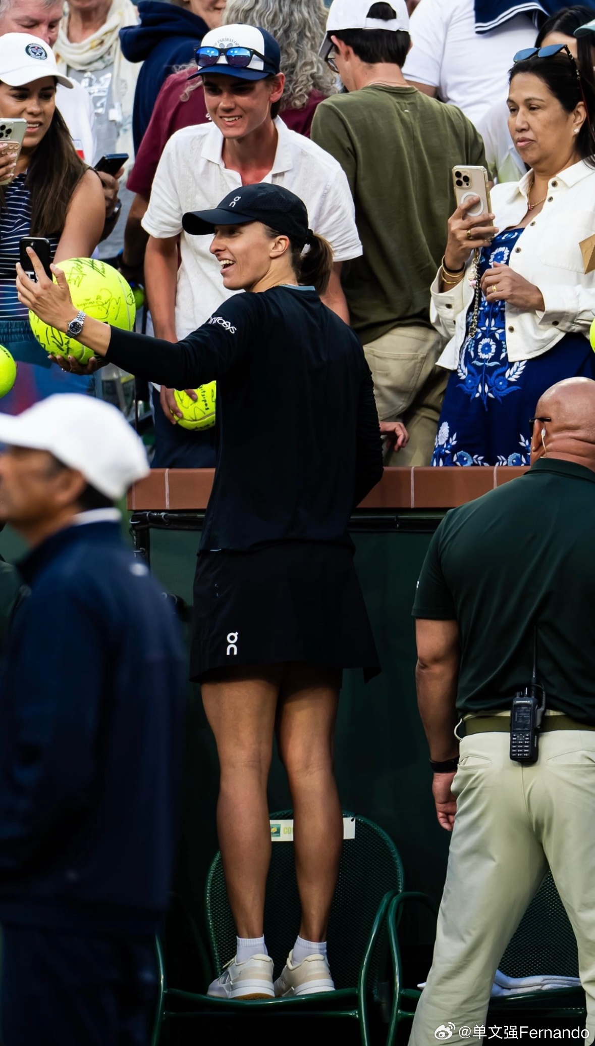 斯瓦泰克!今天IW印第安维尔斯赢球晋级后,非常开心,赛后现场采访因为前序场次打得久积压,所以时长很短……但是Iga赛后场内签名合影依旧时间充分,还站在椅子上给球迷自拍🤳wta