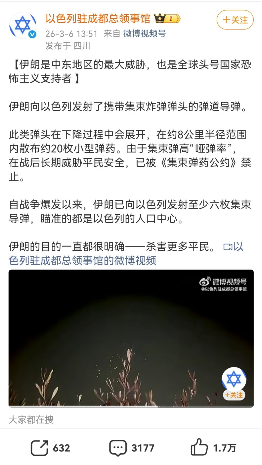 恁复国主义实体往别人家里倾斜集束炸弹的时候,怎么不说话?