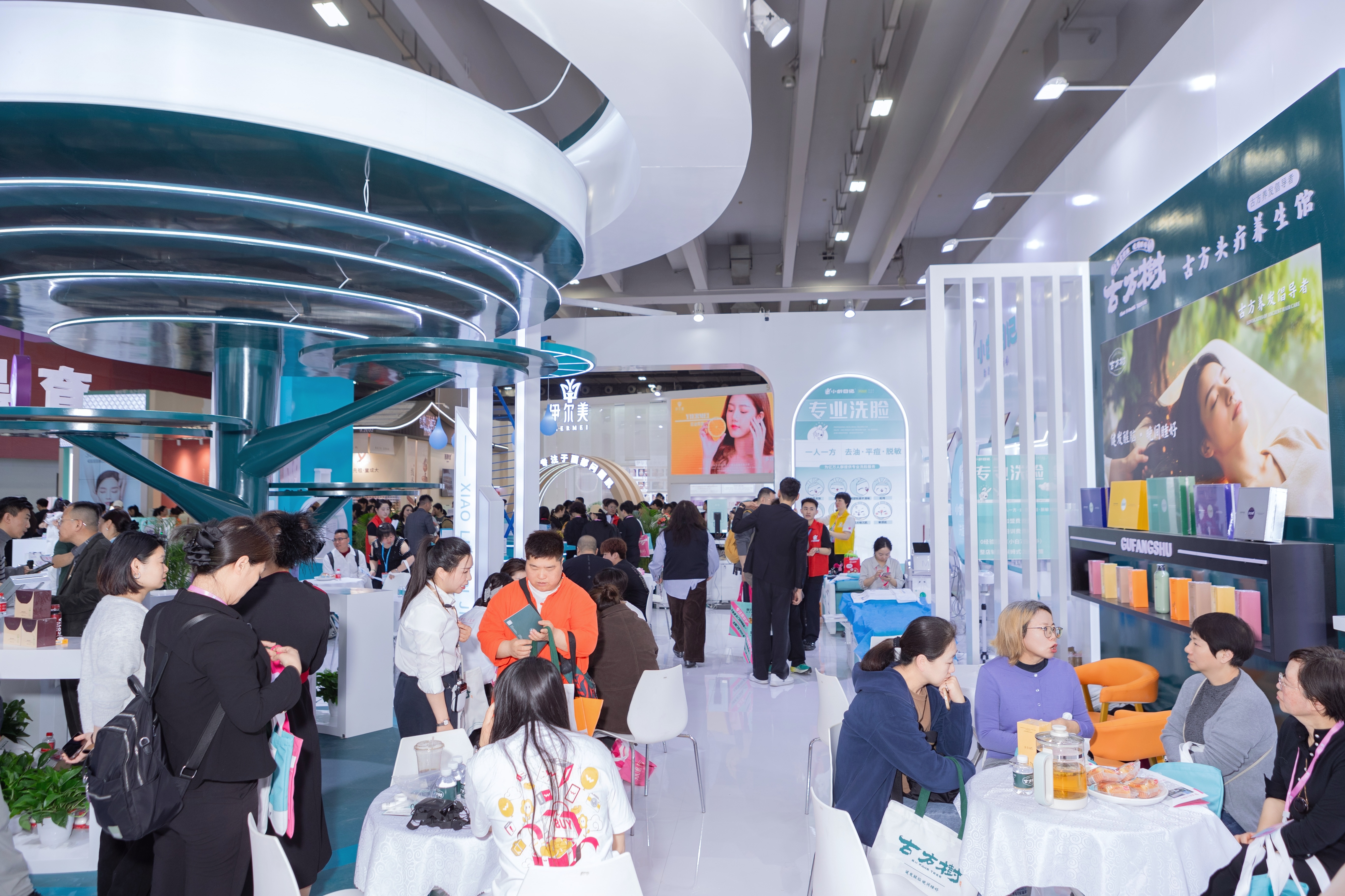 本来只是陪朋友来广州美博会凑热闹,结果自己倒被种草了一堆东西。作为美业风向标,美博会每年开展首日都会迎来汹涌人潮,展馆内人头攒动,随处可见拖着行李箱奔波于各展位之间的创业者。路过B区9.2馆,被F03的展馆震惊到了,整个展厅特别大,人也很多,一看是小龄日记、私后、古方树,三个品牌的联展。第69届广州美博会现场热潮涌动