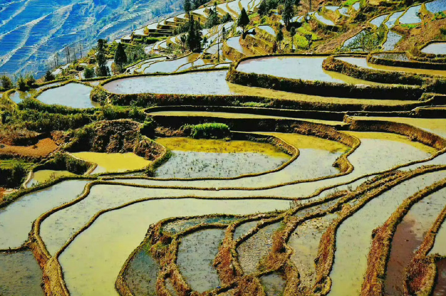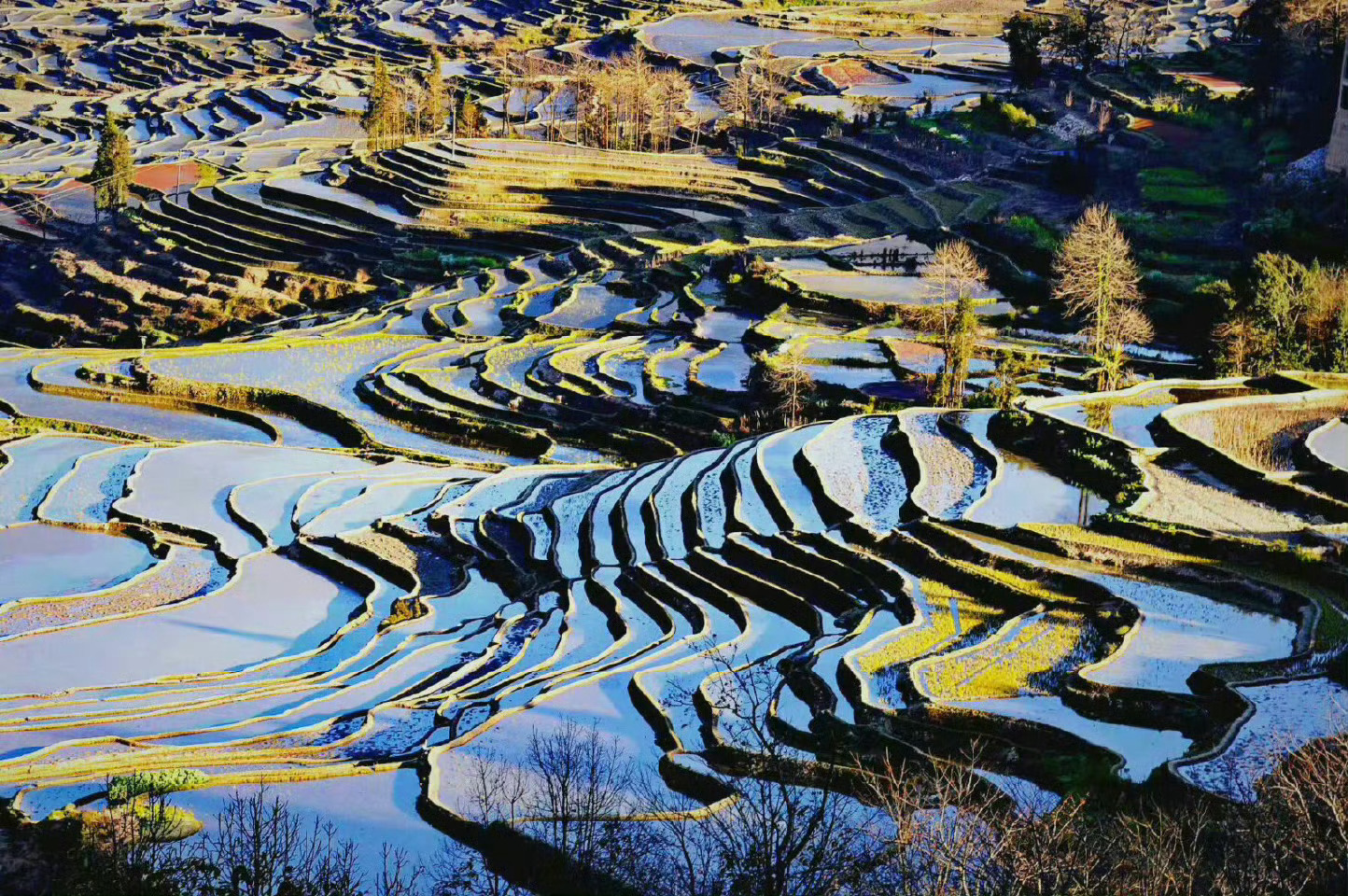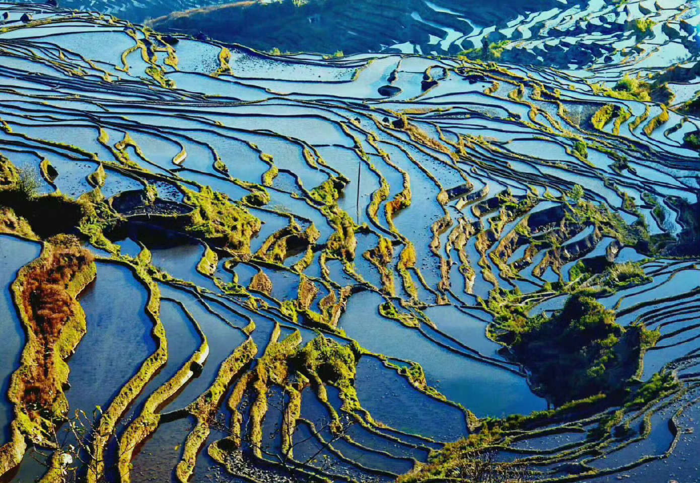 云南·哈尼梯田,梯田的色彩会随太阳不同的照射角度而变换颜色,使你置身在大自然的画卷中。