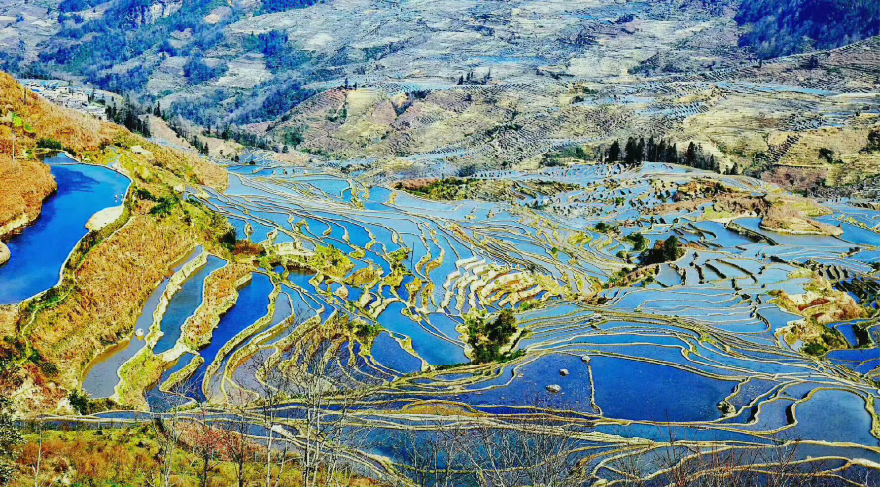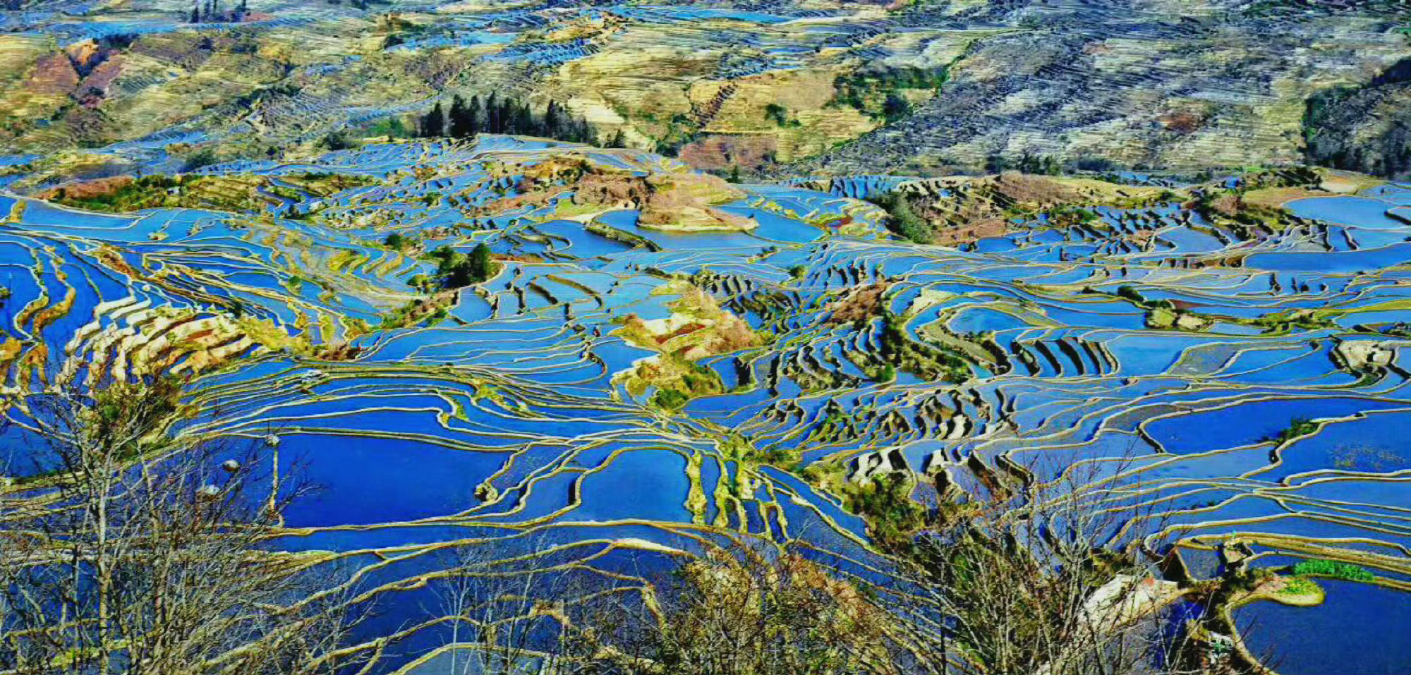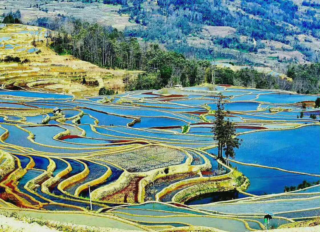 云南·哈尼梯田,梯田的色彩会随太阳不同的照射角度而变换颜色,使你置身在大自然的画卷中。