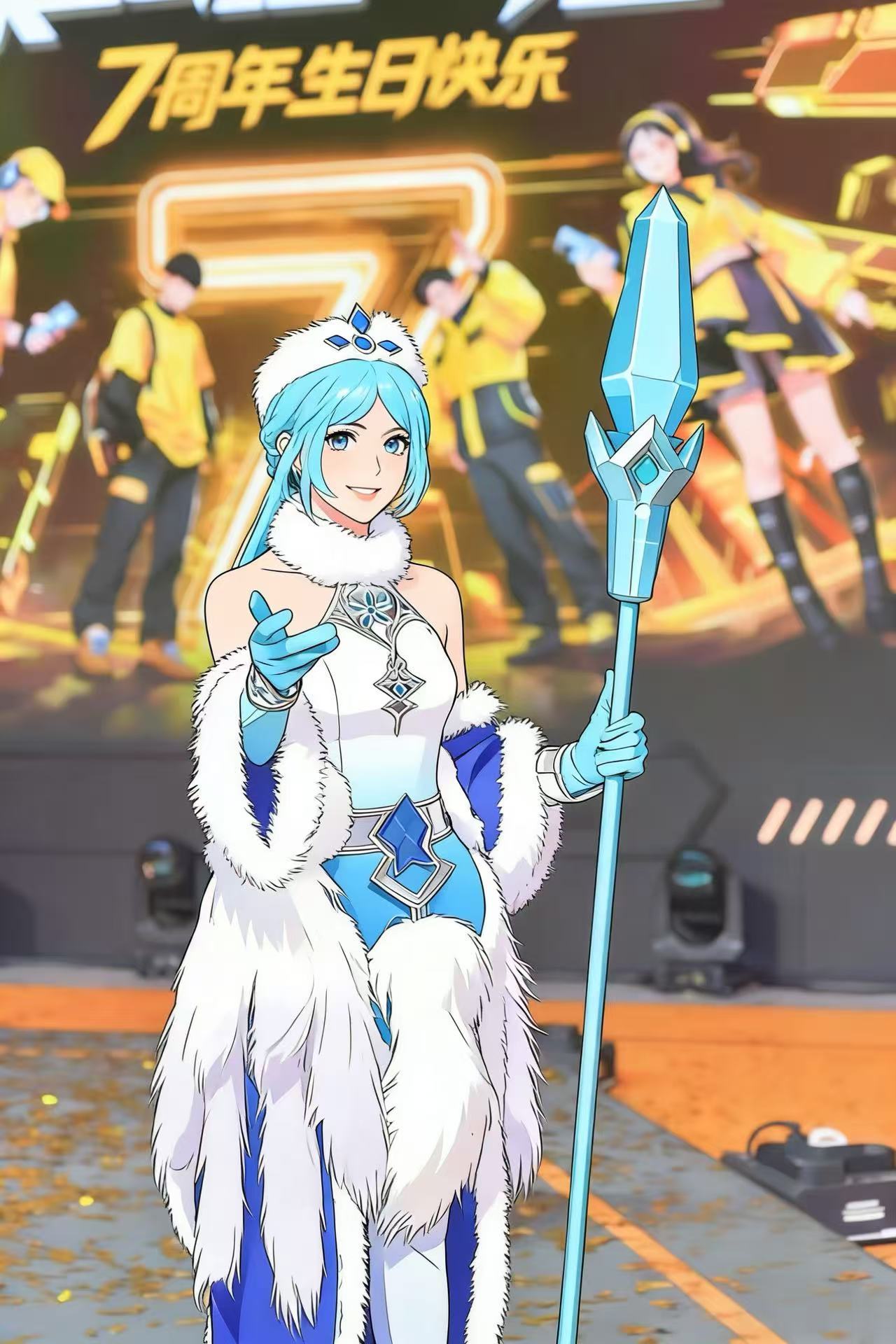 重点要夸爆王昭君这套冰雪蓝造型美到我失语❄️ 蓝发配白绒质感拉满,眼神又灵又媚,每一帧都像从游戏里走出来的!