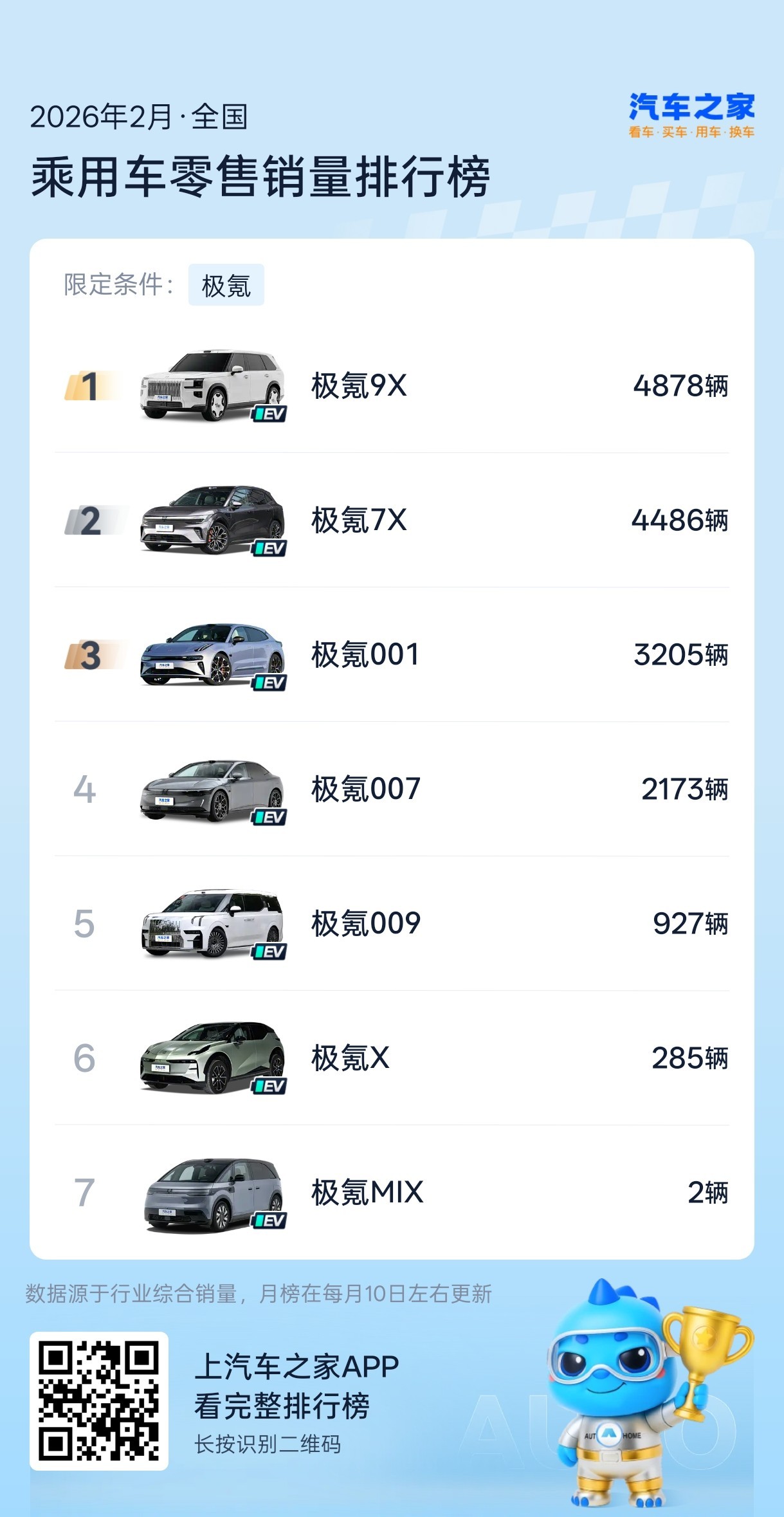 2月份各车型销量(不包括海外)