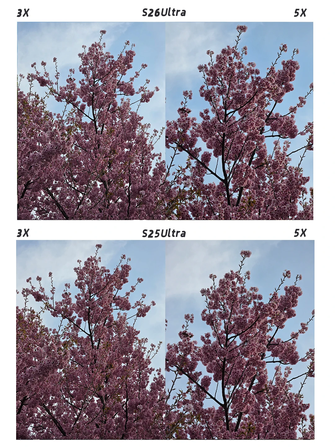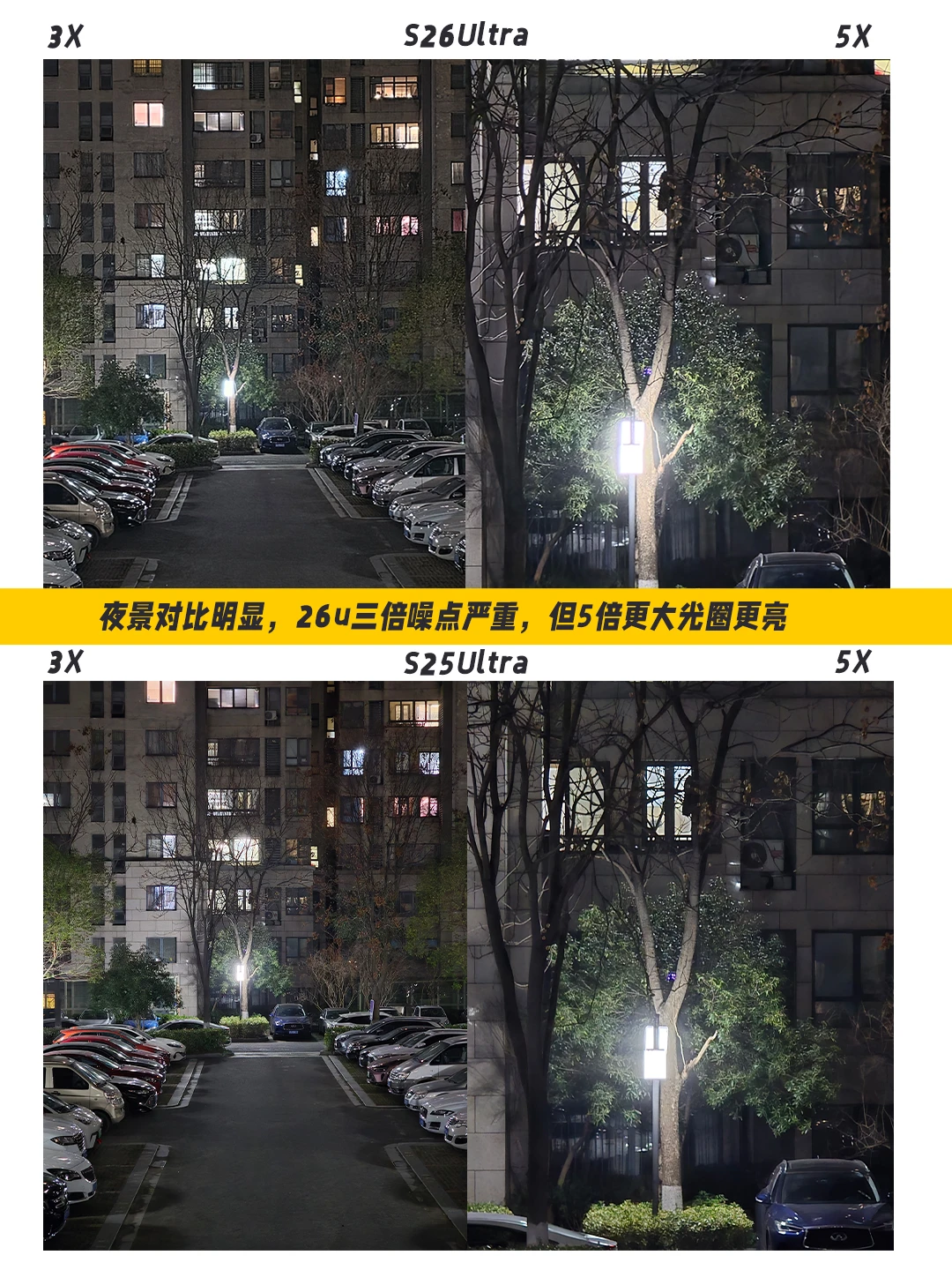 ✅ 5X 长焦:更大光圈优势明显,比 S25U 亮一档,噪点控制更好;