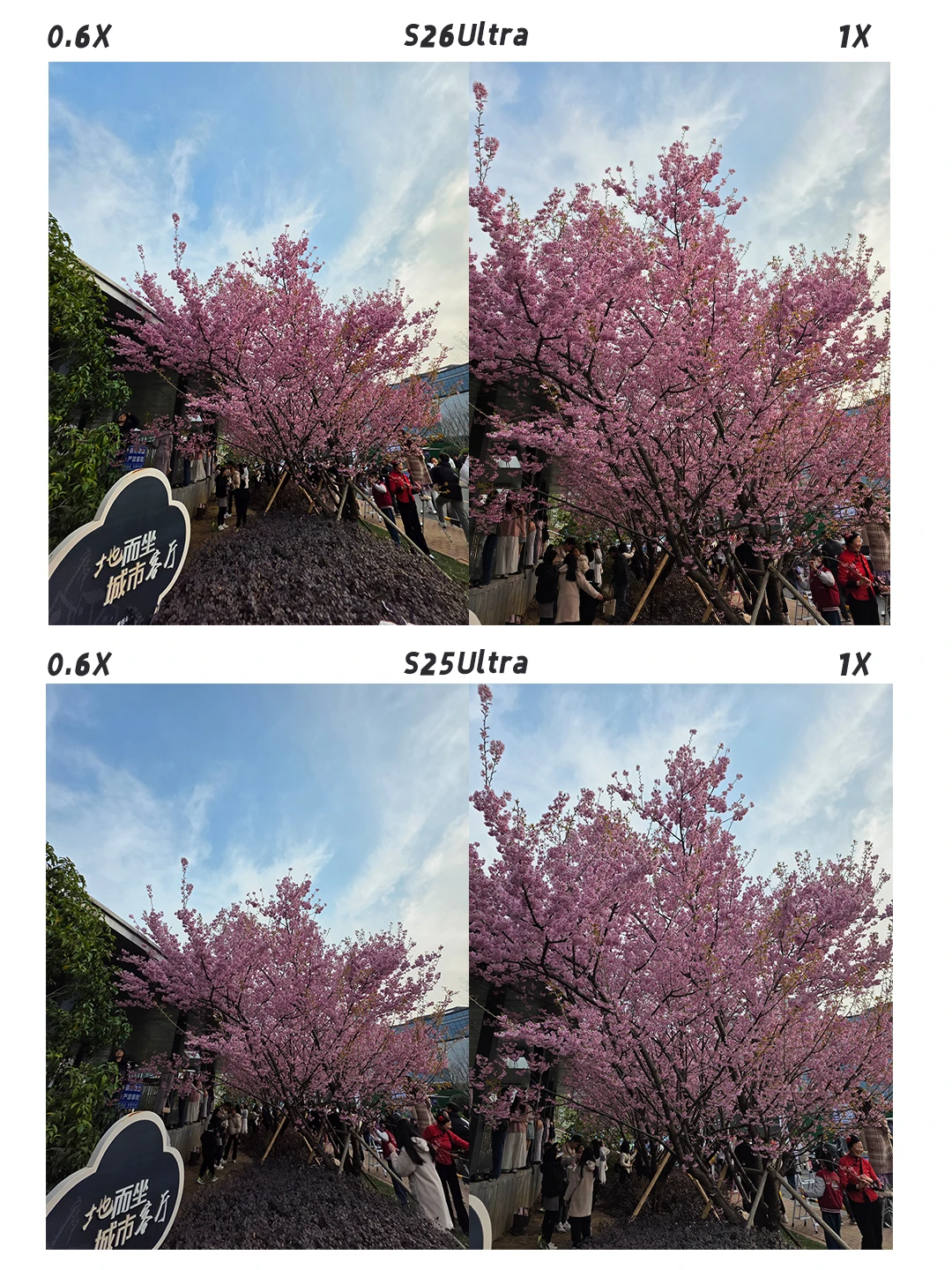白天拍樱花:两者差距不大,S26U 的白平衡更自然一点。