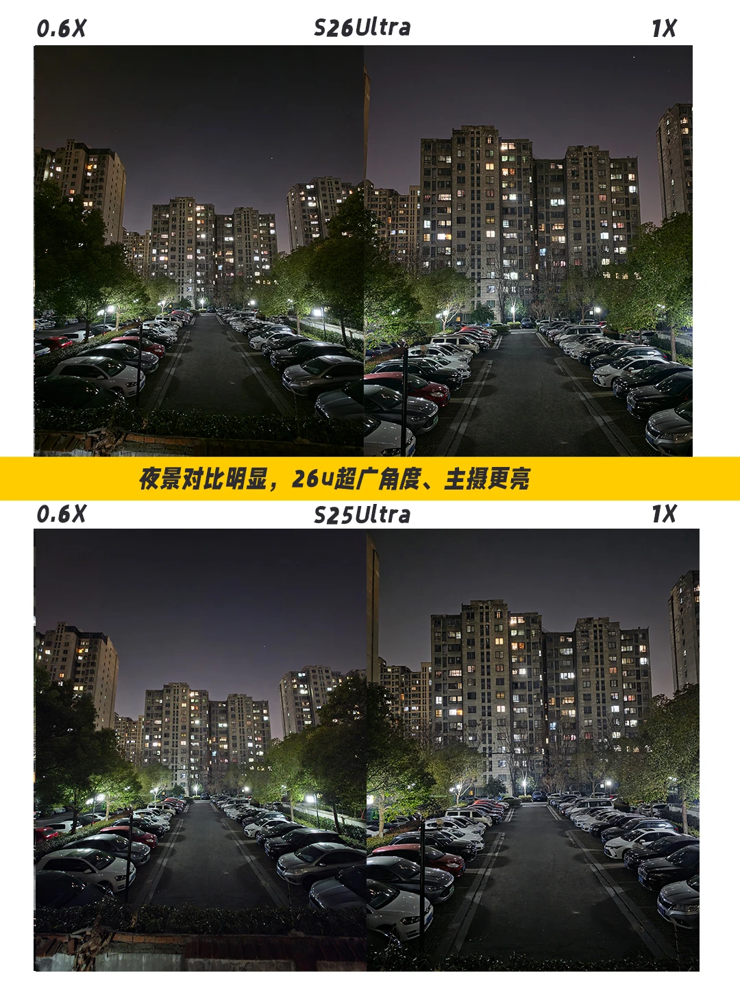 ✅ 0.6X/1X 主摄:S26U 更亮,暗部细节拉满;