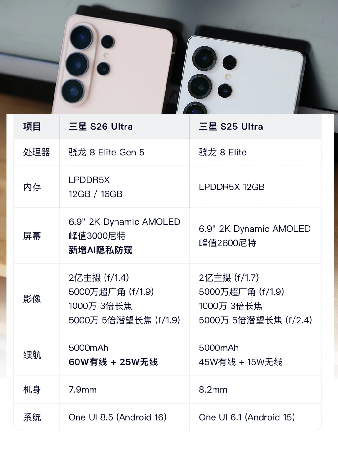 ✅ 必冲 S26U:追求防窥屏、快充、夜景长焦,预算充足的朋友;