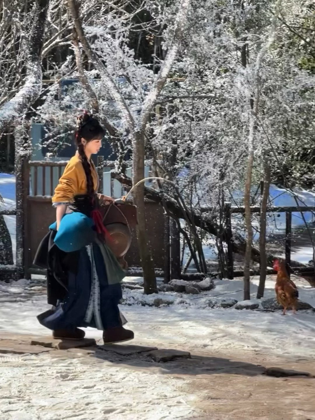 刘亦菲这条裤子挺养生,毕竟降温了肚脐眼必须护住啊