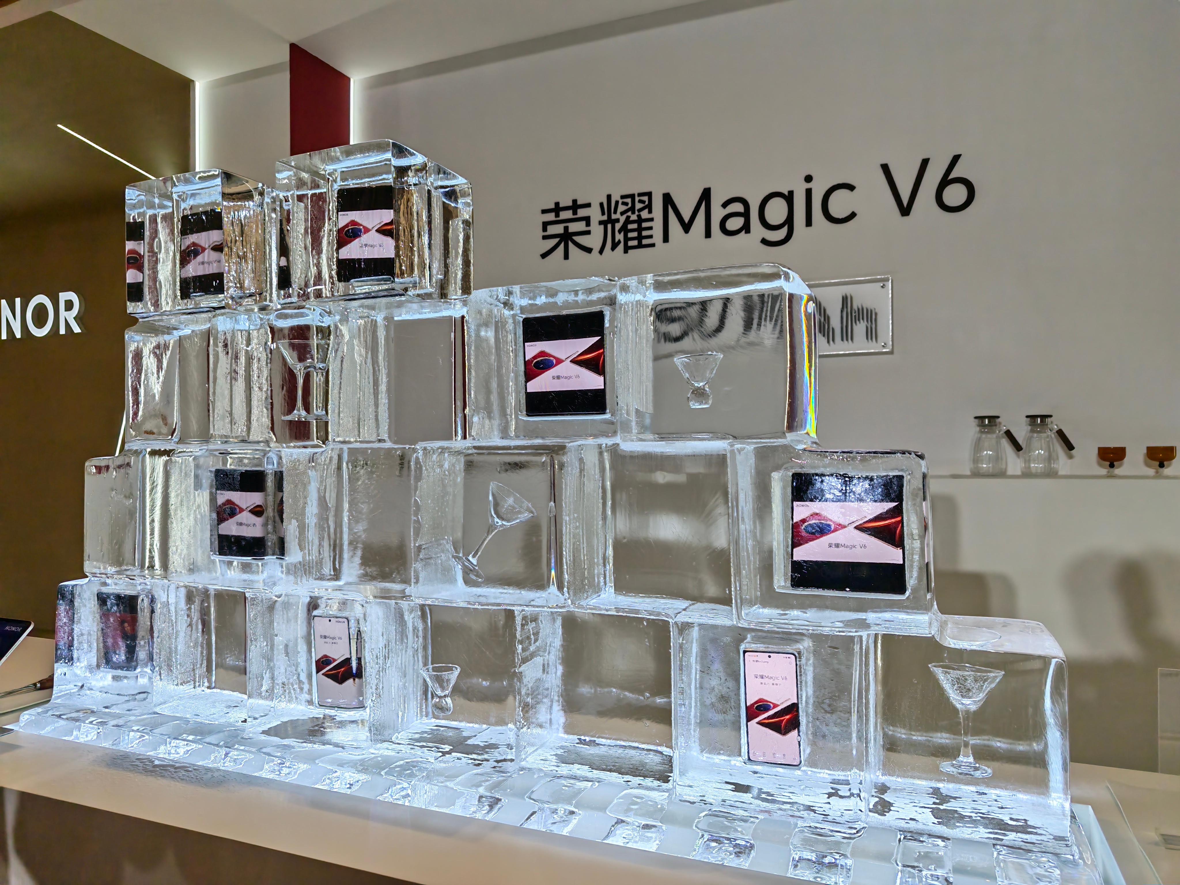 荣耀Magic V6 发布会现场直接把手机冻冰块里了?我摸了一下,是真的冰! 深圳·前海国际会议中心
