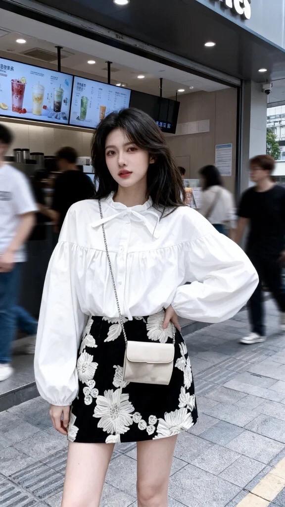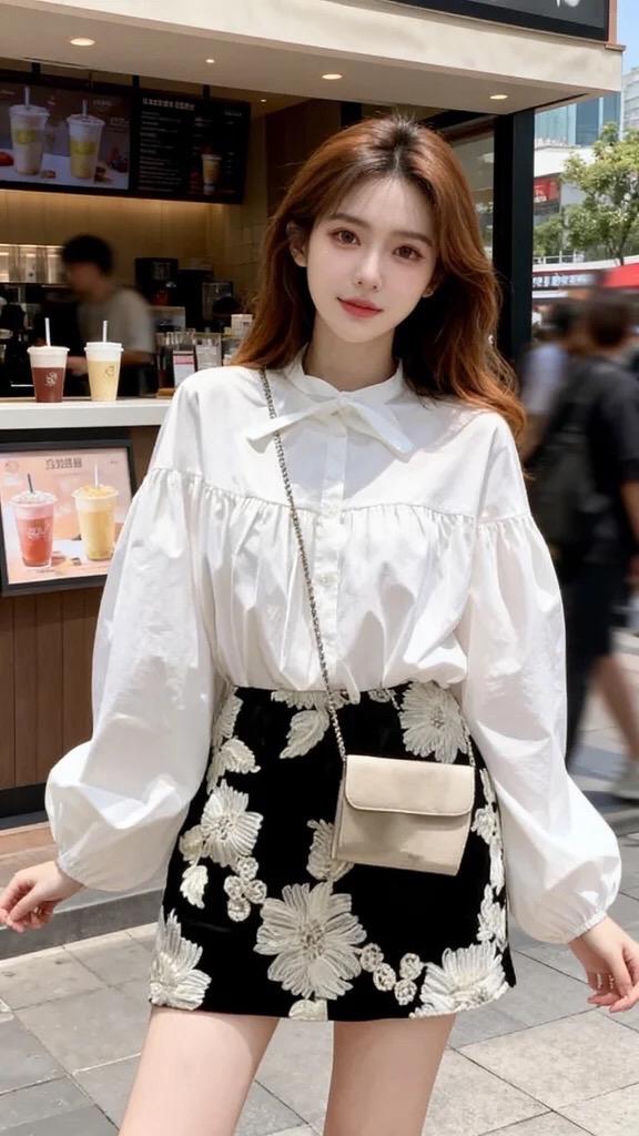 韩风穿搭 温柔穿搭 奶茶穿搭 白色衬衫搭配短裙 衬衫搭配短裙套装
