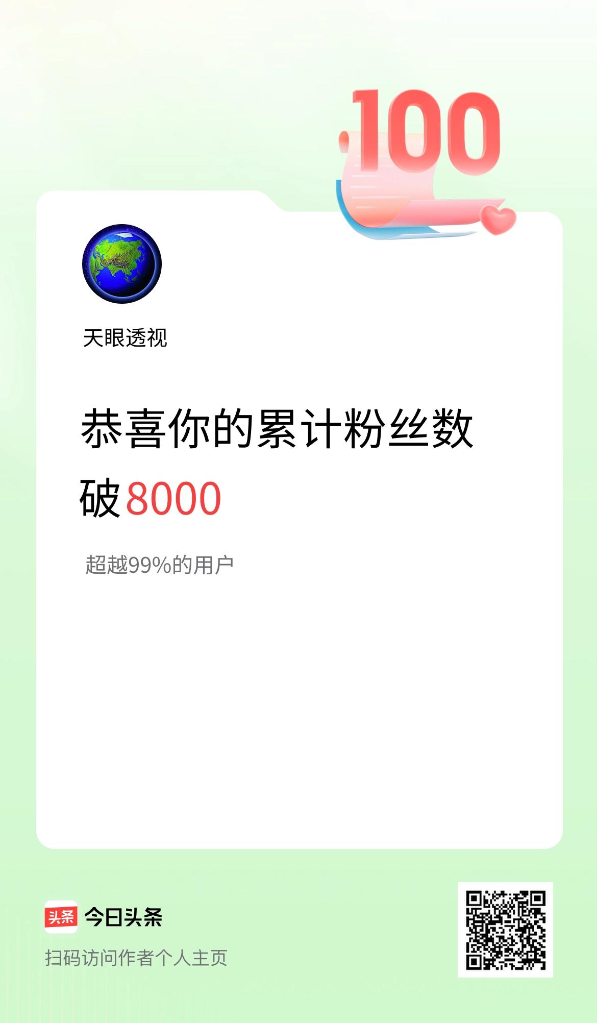 我在头条累计粉丝数破8000啦!