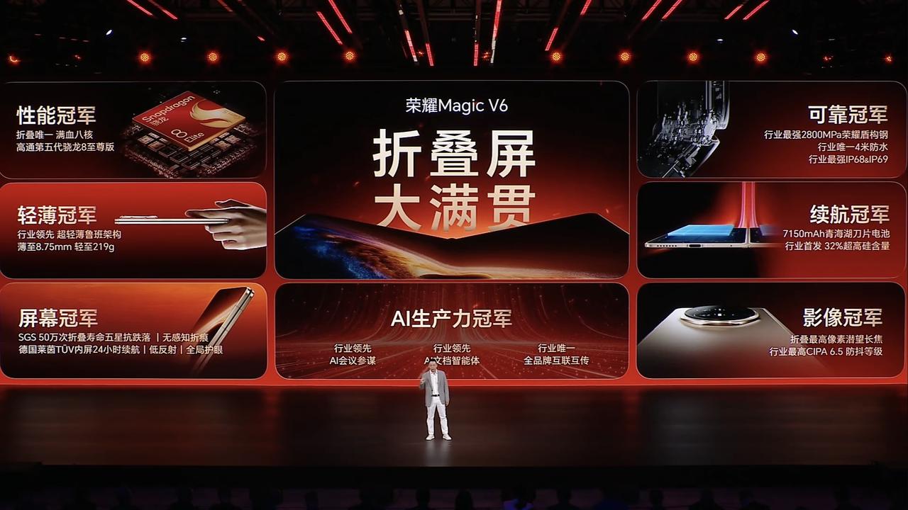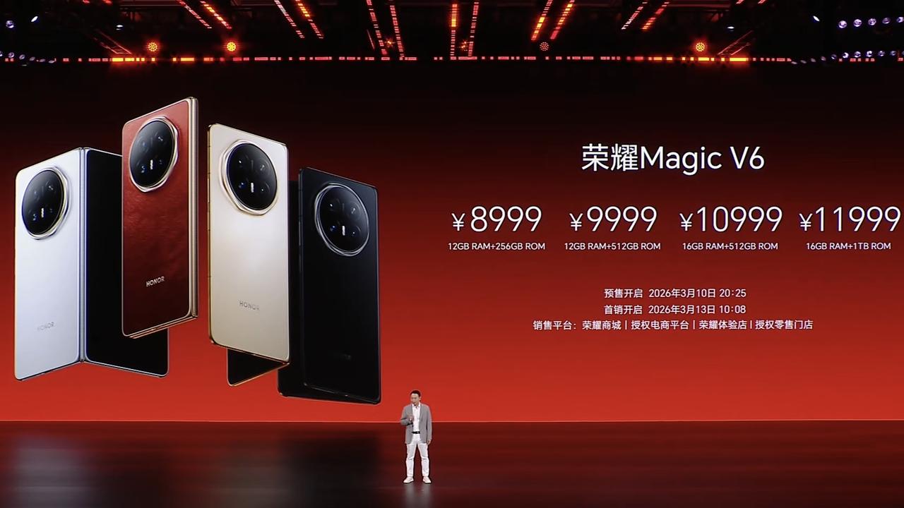 荣耀Magic V6在国内市场正式发布,号称“折叠屏大满贯,”谢霆锋、徐梦桃、王心迪同款,16GB内存版本价格相比上代上涨1000元。电池容量相比海外版有小幅度增加,但有几个细节要留意: 仅16GB+1TB版有7150毫安时电池 仅1TB版本支持北斗卫星短信 仅白色版219克和8.75毫米后,其他颜色厚重一些 与苹果生态互传需要安装第三方App 内屏升级UTG,但黑色边框比较宽 影像硬件几乎没提升,超广角光圈变小,长焦防抖增强 12GB+256GB:8999元 12GB+512GB:9999元 16GB+512GB:10999元 16GB+1TB:11999元 相比Magic V5,讲真V6提升幅度不算很大,下周还有另一款大折叠新品要发布,半年后还有苹果折叠屏手机要推出,喜欢折叠屏的朋友可以等等看。荣耀Magic V6