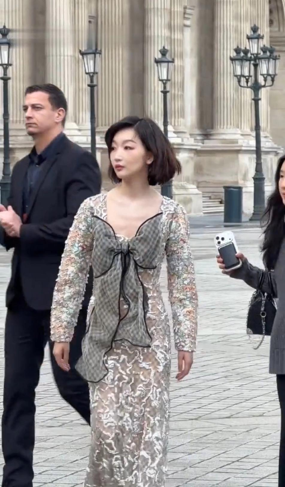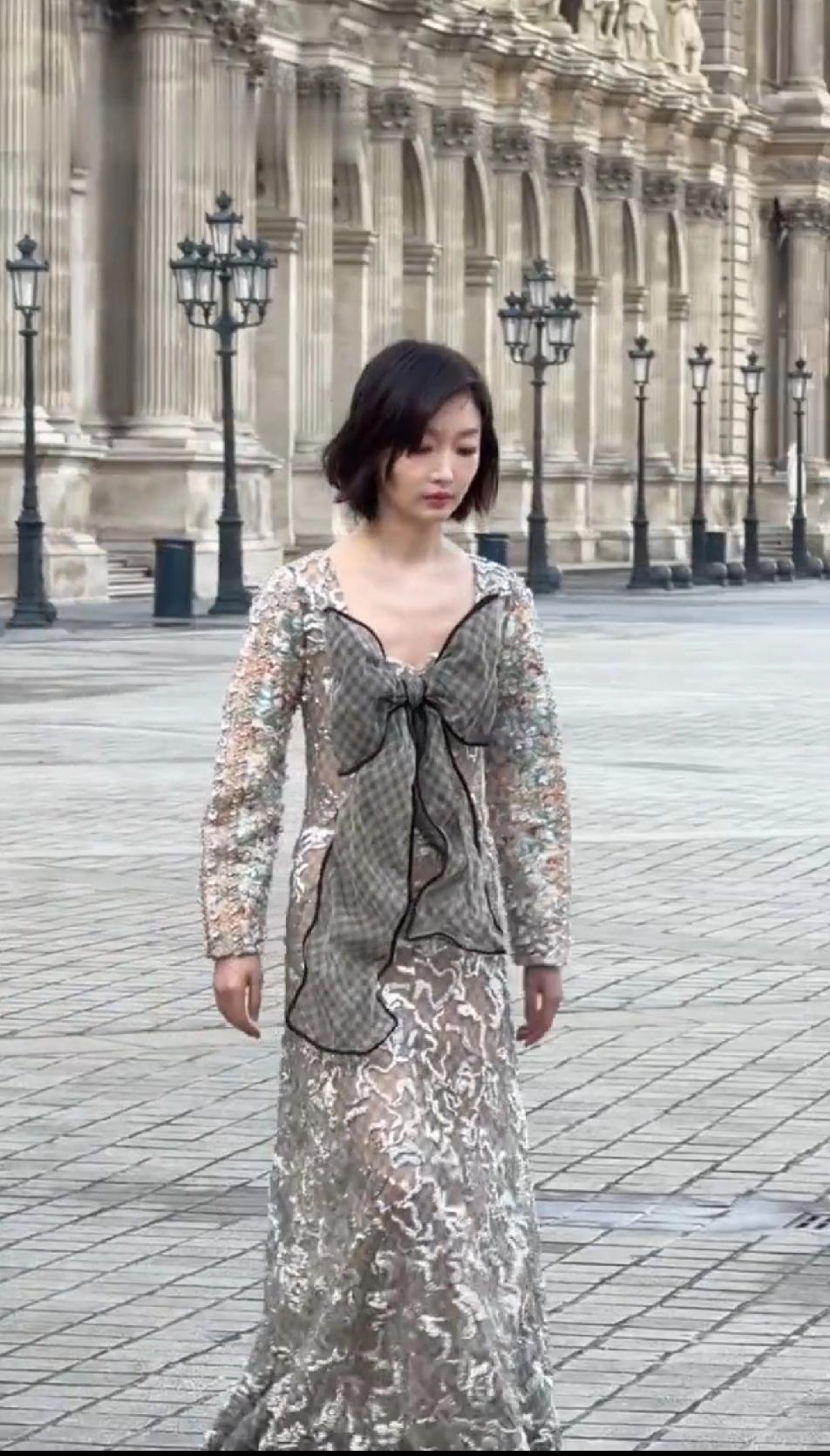 到底是周冬雨的问题还是衣服的问题?LV真的能接受代言人把衣服穿成这个效果来参加大秀吗?周冬雨穿的这件衣服会劝退很多买家吧?真的不会滞销吗?没人告诉周冬雨这件衣服一点也不适合她吗?像小孩穿了大人的衣服跑出来,穿着这样一件挺优雅的礼服,周冬雨却大大咧咧的迈着八字步,甩着胳膊,真的有必要松弛成这样吗?