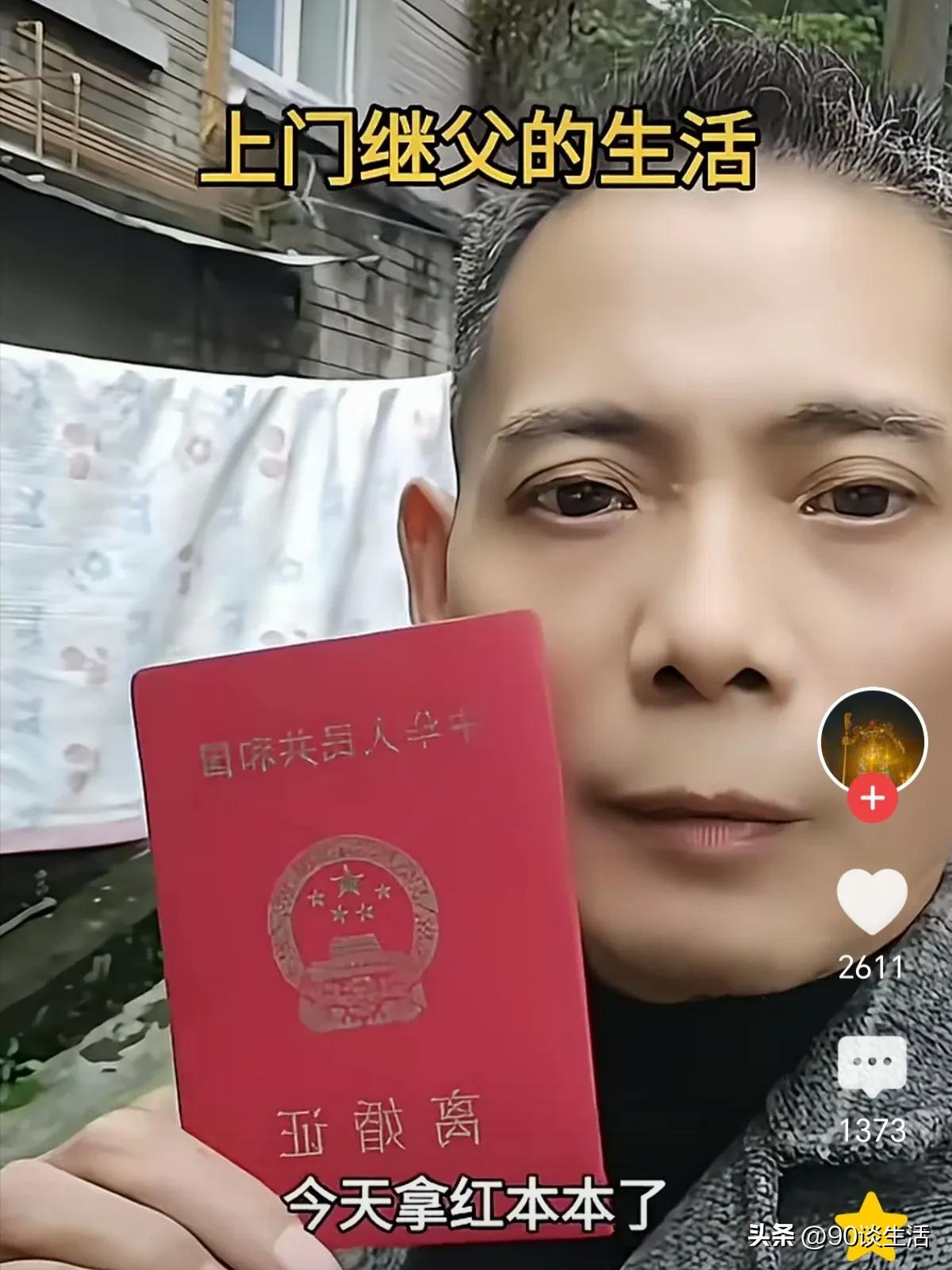 当这个当了十二年继父的男子被扫地出门,让所有的男人都泪目了!起因竟是工作回来没有及时给继子烧饭吃,就被继子狠狠骂,甚至叫嚣赶他出门,没有丝毫的尊重! 男子在视频里无奈的亮出离婚证,说实话挺寒心的,十二年不辞辛苦养家,把继子养大,如今落得这个下场,简直是一片真心错付了。 对此有网友表示:这能怪得了谁呢?还不是怪你自己。年轻的时候,你年富力强,能赚钱养家,当然要靠你,所以一切都讨好你。现在娃儿长大了,就认为你没有什么用了,你又不是别人亲爹,凭啥要给你养老,该过河拆桥! 这给所有的男人提了个醒:吃一堑长一智,千万不要给别人养儿子,付出越多伤害越深!如果有亲生孩子,就应该好好对待他们,这才比较可靠!