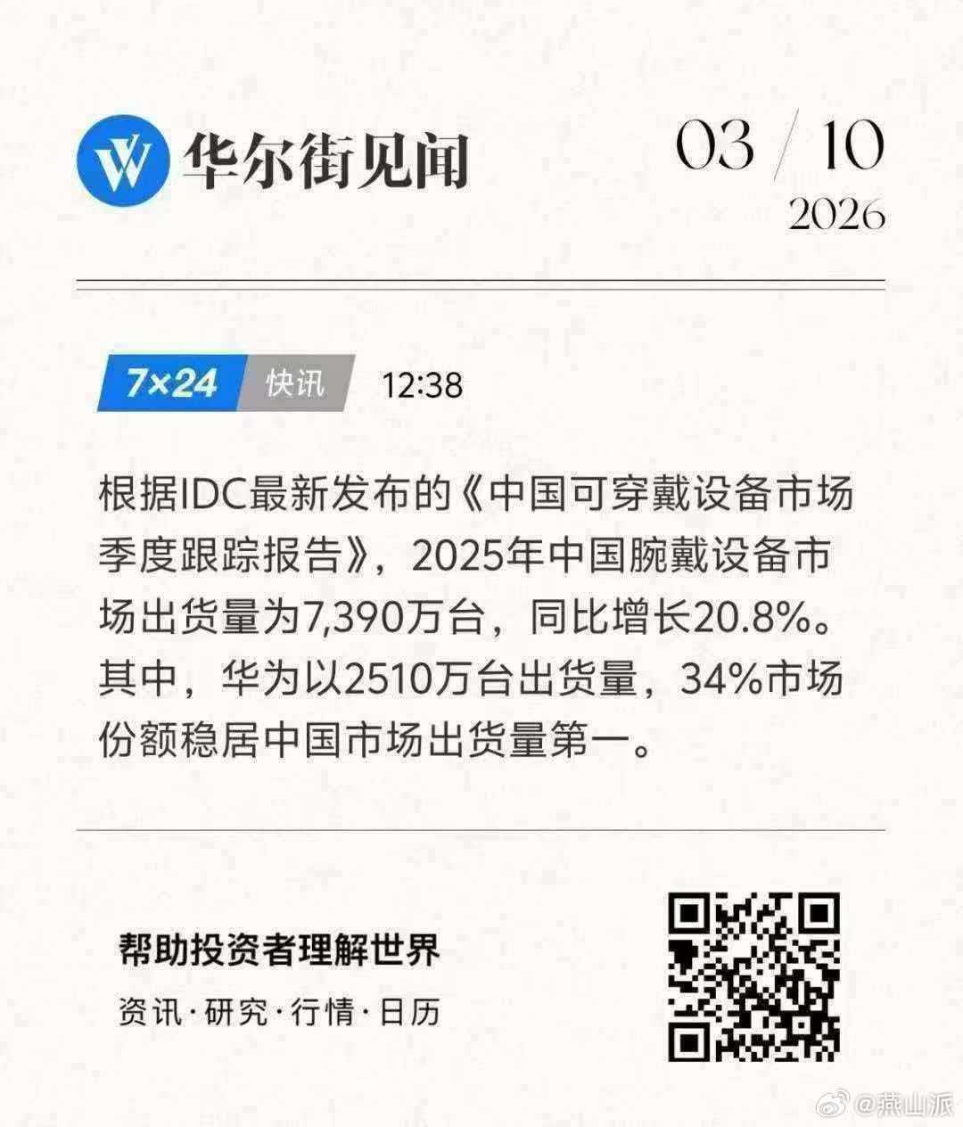 IDC《中国可穿戴设备市场季度跟踪报告》:中国市场每卖出三台腕戴设备,就有一台是华为!