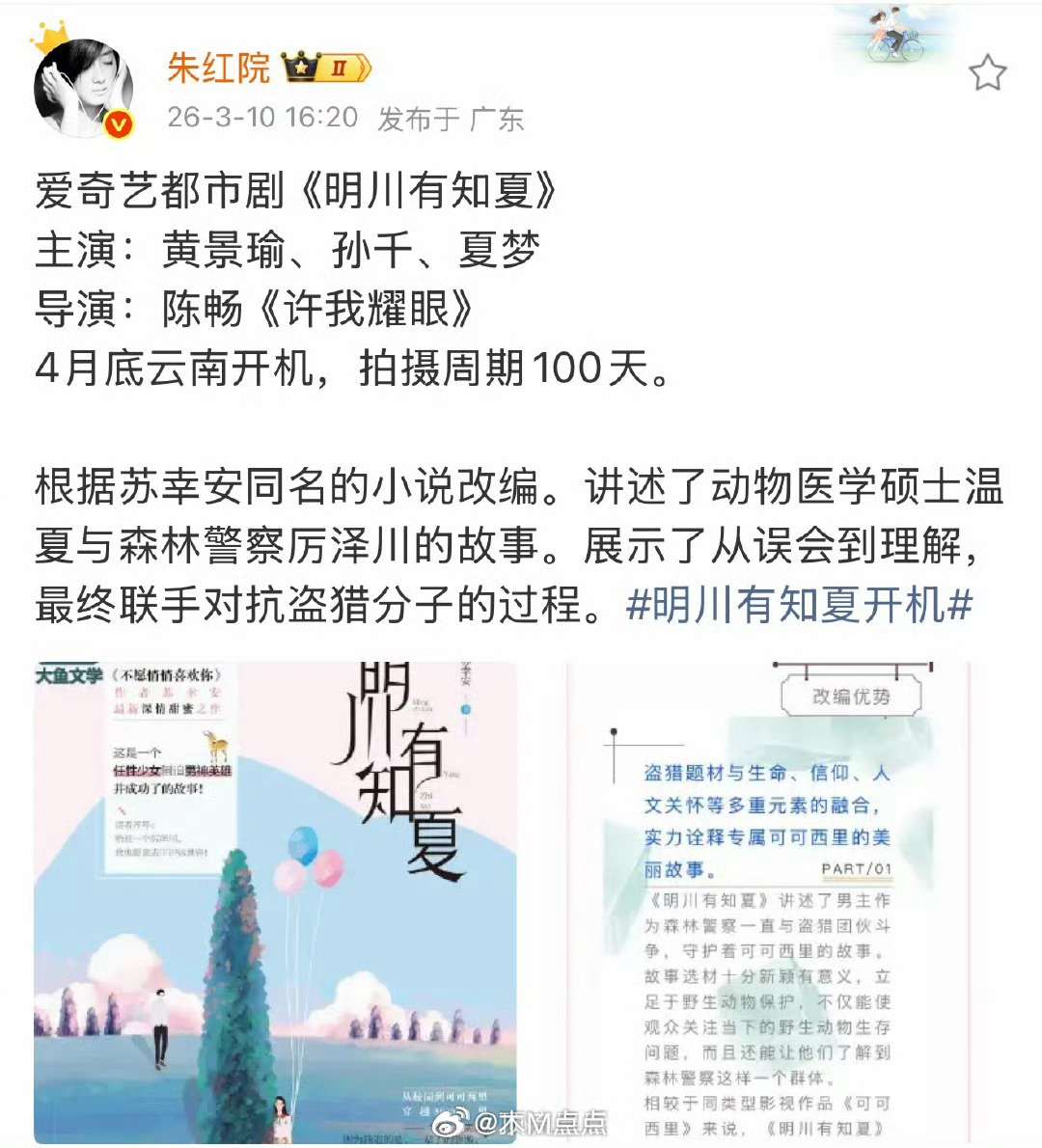 明川有知夏最新主演阵容:黄景瑜、孙千、夏梦……女主换成孙千。黄景瑜、孙千二搭 金晨疑似已出局。暂定4月底开机,根据广电的回应,大家觉得用她是违规,还是舆论过大要避免风险啊? 黄景瑜孙千 明川有知夏