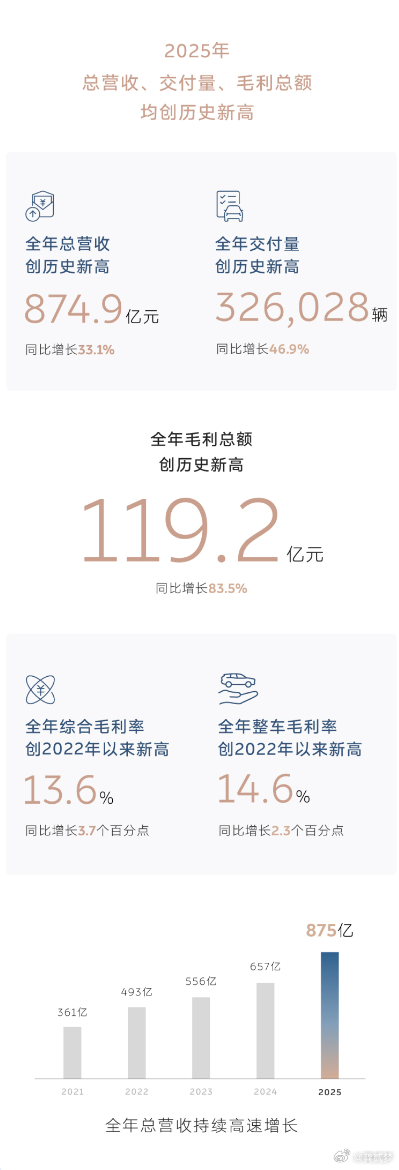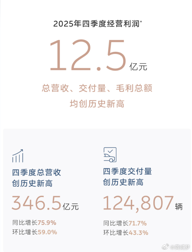 Q4经营利润12.5亿元,比之前预告的7-12亿区间上限还高出5000万,这是成立11年来第一次摸到盈利的门槛,而且是在行业价格战还在持续的大背景下拿到的,含金量确实不低。