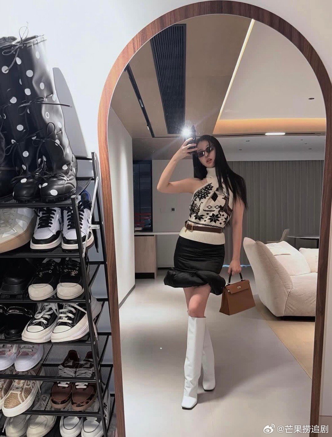 刘亦菲这条裤子挺养生,毕竟降温了肚脐眼必须护住啊