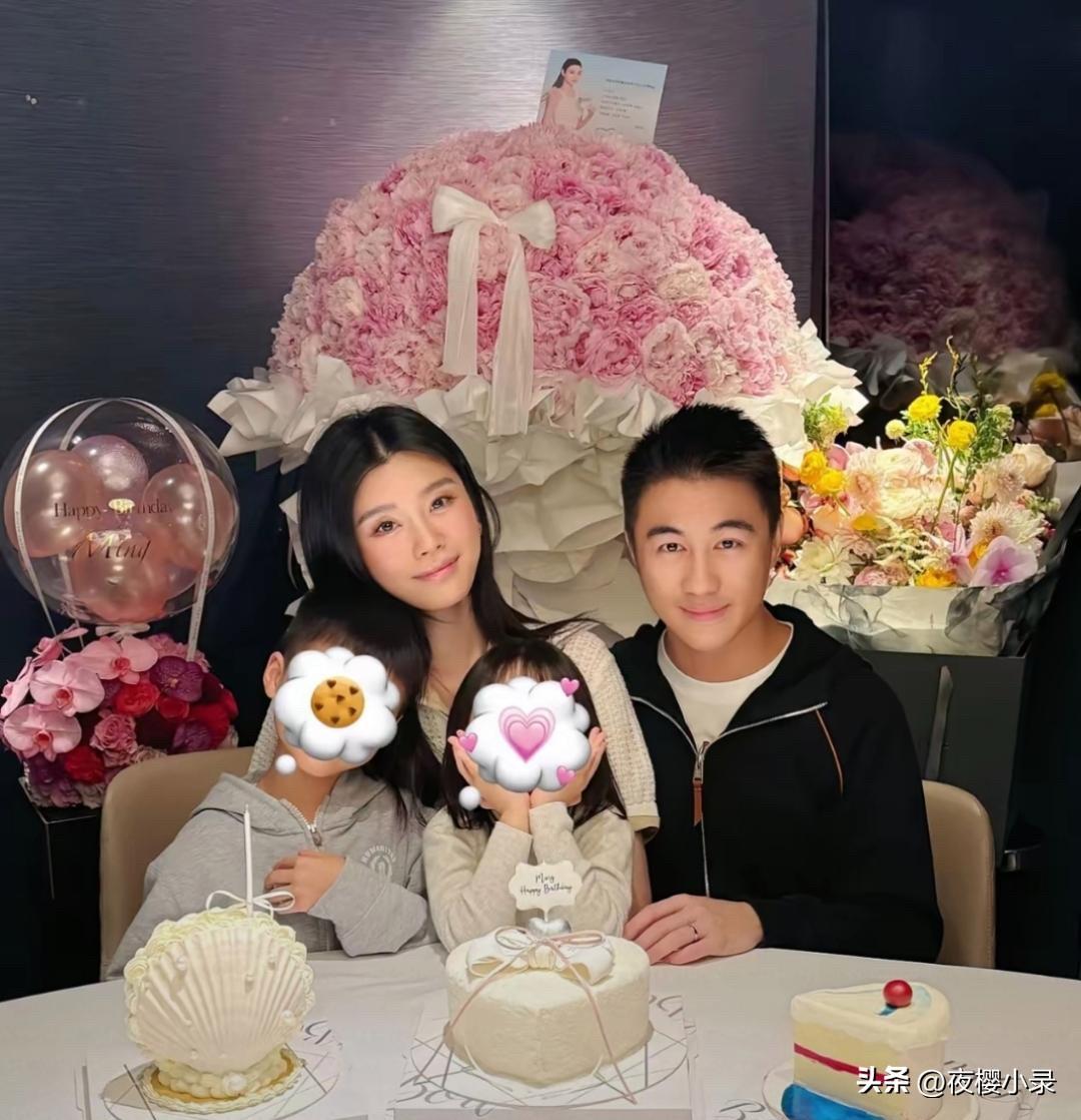 奚梦瑶过38岁生日。一家四口真幸福![福][福]