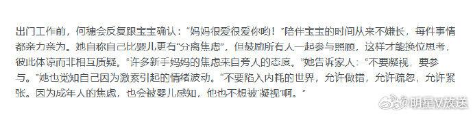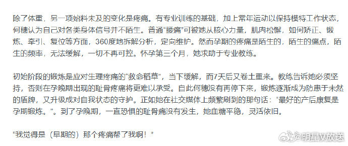 何穗谈产后身材变化何穗称和孩子有分离焦虑受访谈产后身材变化,称明显看到脖子前倾