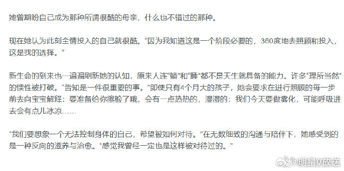 何穗谈产后身材变化何穗称和孩子有分离焦虑 受访谈产后身材变化,称明显看到脖子前倾、肩膀内扣、肋骨外翻等问题,“但我也没觉得怎么样,这是一个正常的阶段性的状态”;透露出门工作前会反复和宝宝说爱你,称自己比孩子更有“分离焦虑”,鼓励家人们一起参与照顾,彼此体谅而非相互质疑。