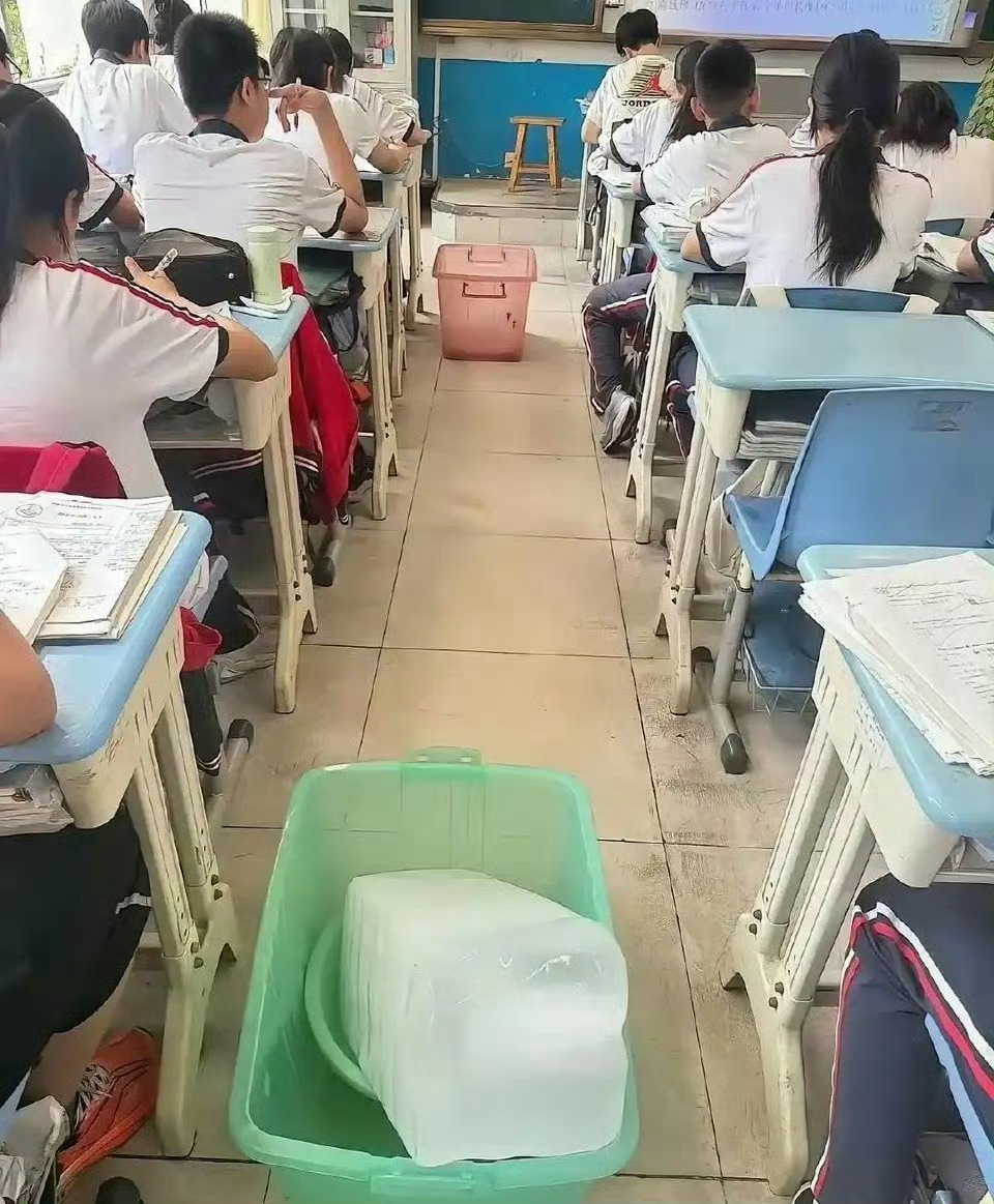 四十度的天教室里就放个冰块?把孩子热成啥样了装空调的钱都去哪了