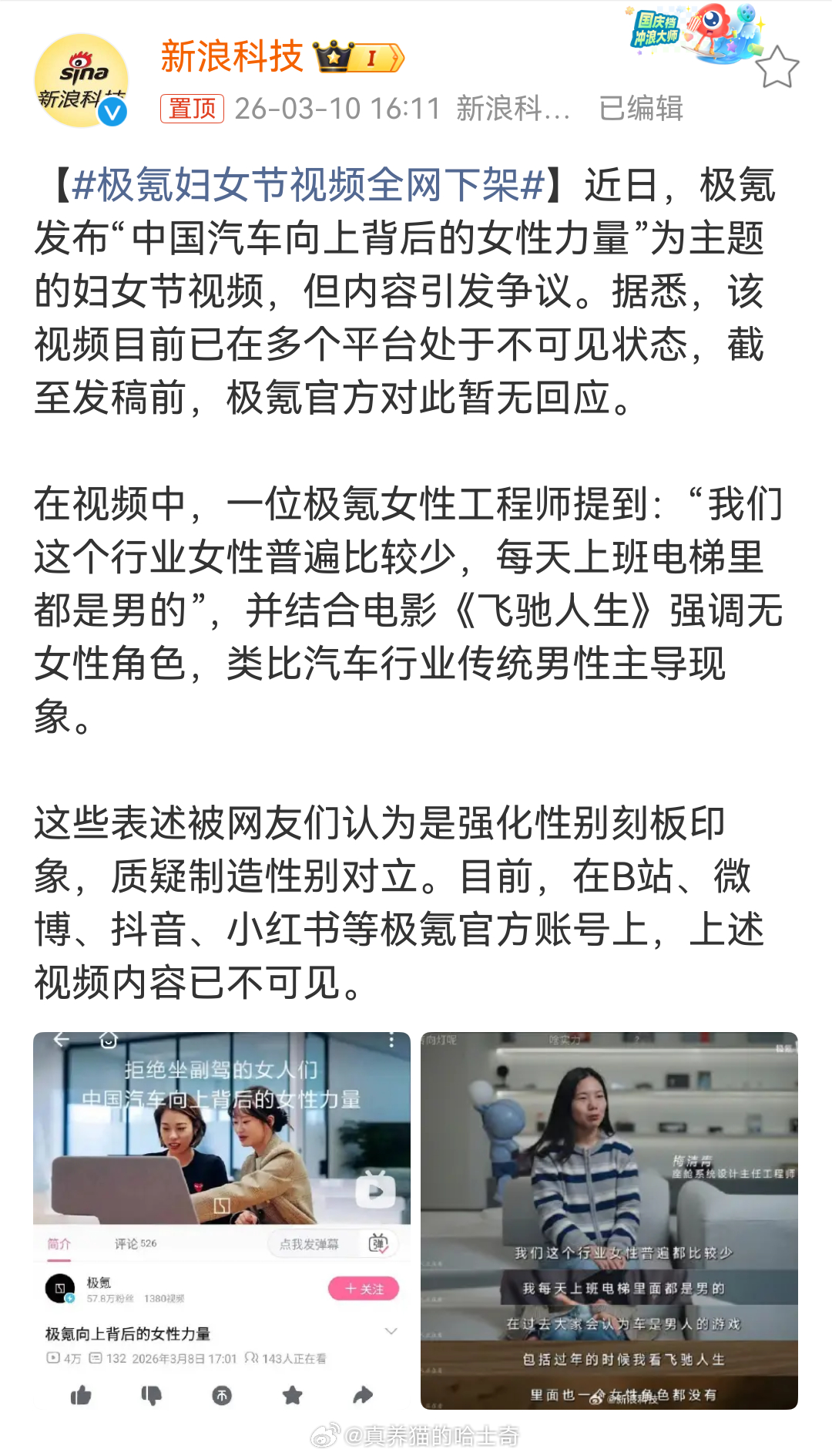 极氪妇女节视频全网下架我感觉这表述也没啥问题呀,谁跟我讲讲雷点在哪儿?这不是就描述个事实吗?