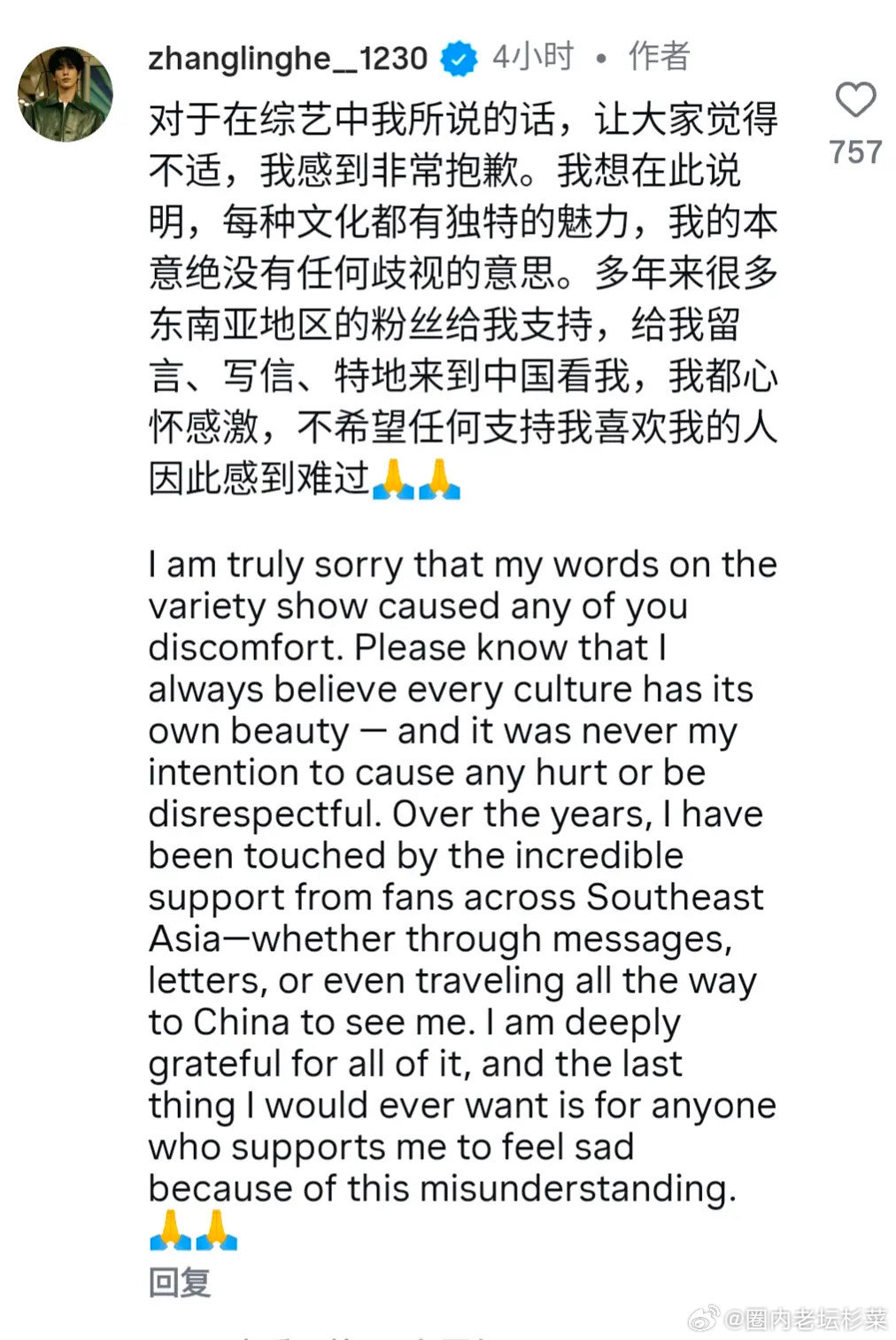 张凌赫海外翻车了,歧视东南亚,这情商还是别说话了