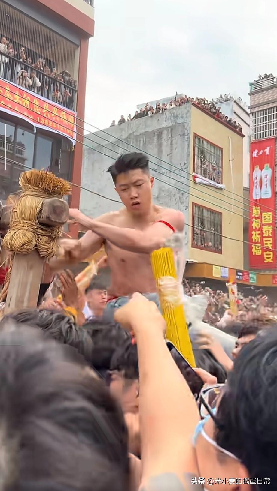 拖神林铭钊,被挨打了58拳! 我在人群里被挤成了“牛肉饼”! 汕头盐灶拖神现场,我挤在最前排,手机举得胳膊都快断了,亲眼数着男神林铭钊挨了至少58拳! 他赤着上身,被大伙高高托在人浪里,拳头、胳膊肘、甚至高举的香都往他身上招呼,脸憋得通红却还在硬扛。我站得太近,后背被人潮撞得生疼,胳膊也挨了好几下“误伤拳”,差点被挤成一张“牛肉饼”,就为了拍他这股不服输的劲儿。 这就是潮汕独有的“拖神”习俗,老少爷们扛着神像冲撞街巷,越热闹越显年味足。有人说这习俗太野,可在潮汕人眼里,这是刻在骨子里的热闹,是把对生活的热望全揉进冲撞里的仪式。 你见过这么疯的民俗吗?为了拍个热闹,你愿意挨几拳