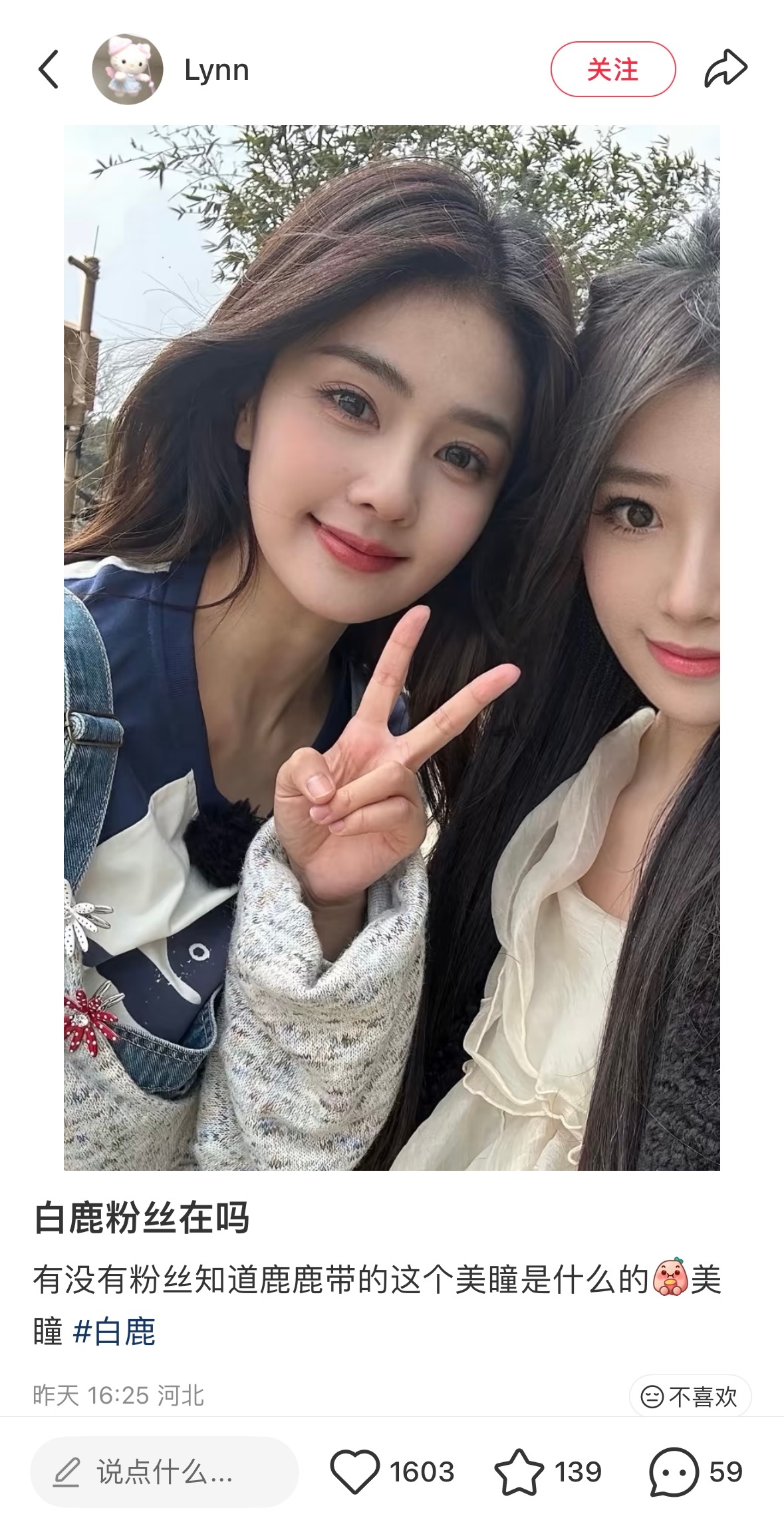 笑起来脸颊上还有宝宝肉 这张白鹿未免也太美萌了….