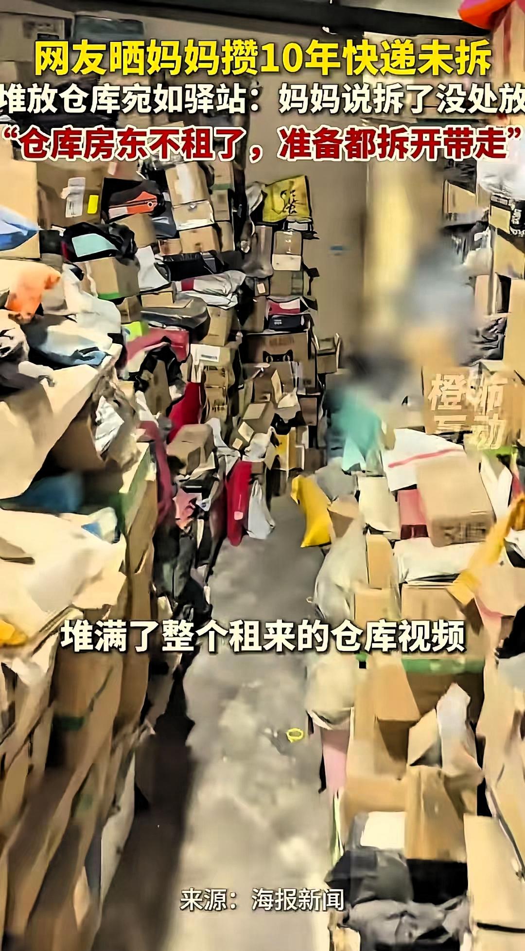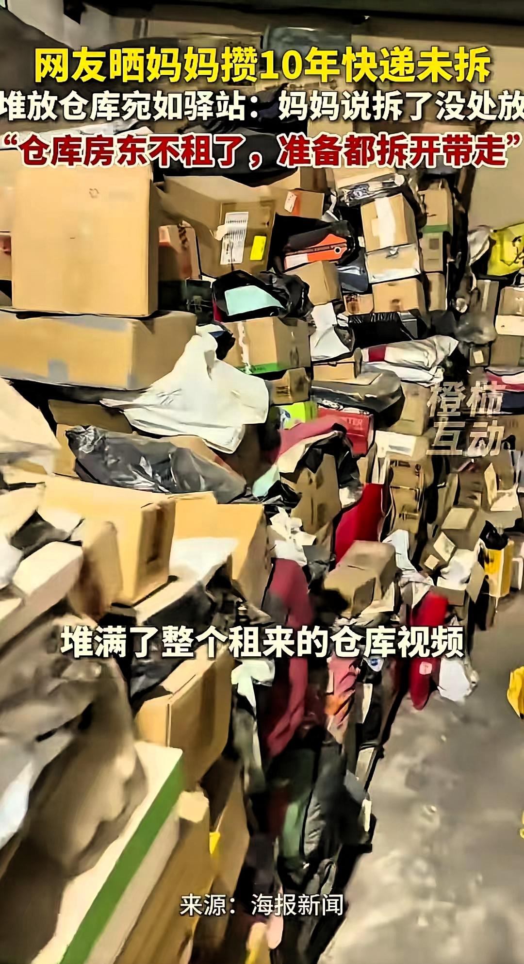 “太不可思议了!”江苏,一女子因要退租仓库,打开正要整理时傻眼了,发现仓库内堆满了母亲近十年网购却未拆封的快递,数量之多如同小型快递驿站,此事引发不少网友共鸣。 据了解,女子的母亲从2016年开始频繁网购,购买的物品种类繁杂,不少商品买回来后并未使用,也没有拆封,因家中无处摆放,便陆续存入租用的仓库。十年间,包裹越积越多,直到仓库需要退还,才暴露出这一状况。面对家人询问,母亲表示,很多东西用不上,拆开后也没有合适的存放位置。 在不少人看来,这种长期囤积、不拆封的行为有些难以理解。但从长辈的生活习惯来看,这一行为背后,更多是长期节俭生活形成的思维方式。他们习惯在价格合适时购置物品,总觉得留着总会有用,购买和存放本身就能带来心理上的踏实感,并非刻意浪费。 整个事件中,女儿没有指责母亲,而是和父亲一起耐心整理、分类处理,这份包容格外让人触动。赡养与陪伴,从来不是要求长辈完全符合年轻人的生活标准,而是理解他们的习惯,接纳他们的小执念。 此事也折射出普通家庭最真实的相处状态:没有激烈矛盾,只有生活习惯的差异,以及彼此间的体谅。规范收纳、理性消费值得提倡,但亲情之间的包容与温和,远比物品是否实用、家里是否整洁更重要。 生活本就是充满细碎小事,家人之间多一份理解,少一份苛责,平稳和睦,才是最踏实的幸福。