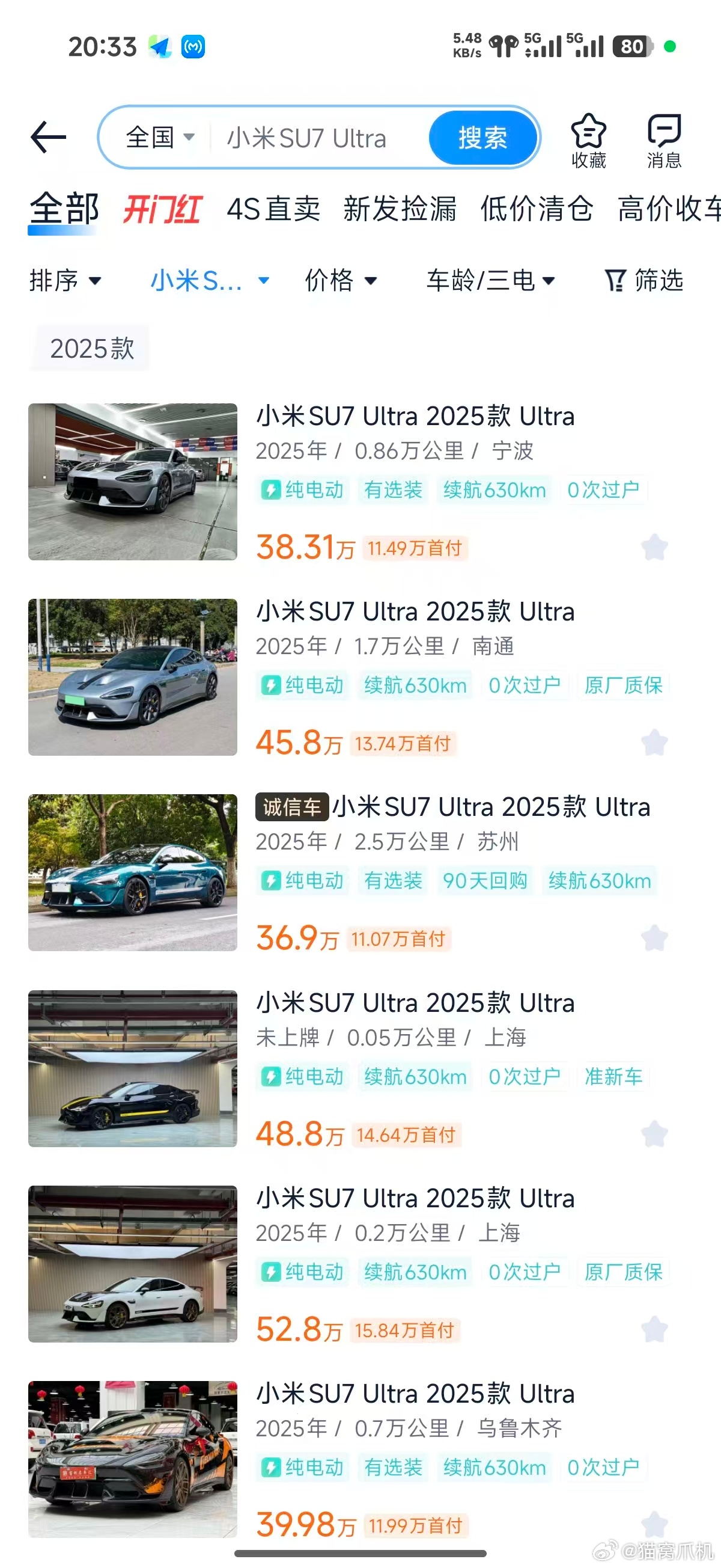 二手小米su7u的价格似乎又涨了