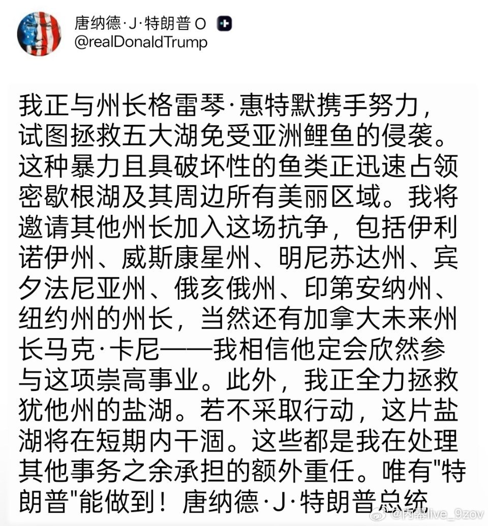 特朗普称马克·卡尼为“加拿大未来的州长”。
