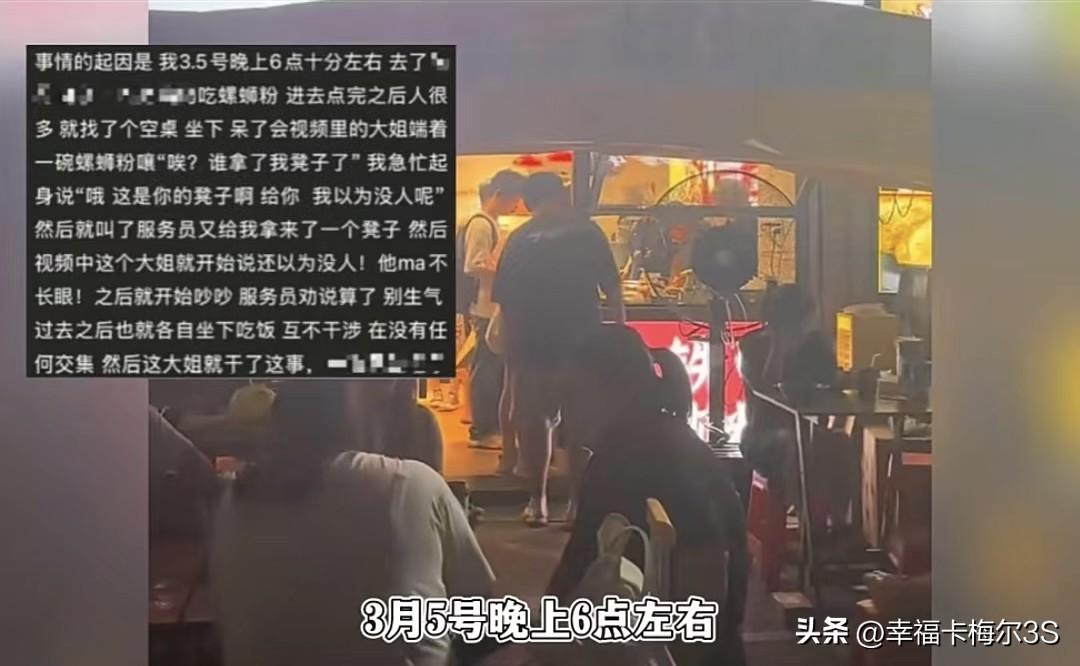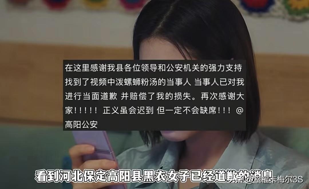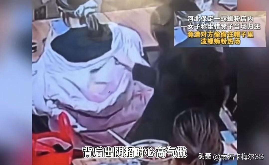 河北保定高阳县有个黑衣女的,为了个凳子现在全国都知道她了,亲戚朋友同事算是把她这人看了个透。 3月5号晚上6点左右,一个穿白色羽绒服的姑娘进了家螺蛳粉店吃饭,随便找了张空桌,拿了个板凳就坐下了。结果才十几秒,背后就传来一阵骂声。那黑衣女的扯着嗓子喊:“哪个不长眼的把我凳子拿走了!” 白衣服姑娘赶紧站起来道歉,说不知道凳子是她的,一边道歉一边把凳子还回去了。可这黑衣女的还不依不饶,服务员劝了半天才算闭嘴。本以为这事就过去了,谁知道吃饭的时候,这黑衣女的在背后使阴招,用勺子舀起自己碗里的红油,直接泼到白衣服姑娘的帽子里了。姑娘还没发现,吃完饭走了,后来被人提醒才赶紧回店里调监控。 监控把黑衣女的那点勾当拍得清清楚楚,连她脸上的皱纹都看得明明白白。现在那黑衣女的被找到了,也跟白衣服姑娘道歉了,但早就晚了。“黑衣姐”的名号都传遍全国了,她身边的亲戚朋友同事,算是彻底看清她是什么人了。