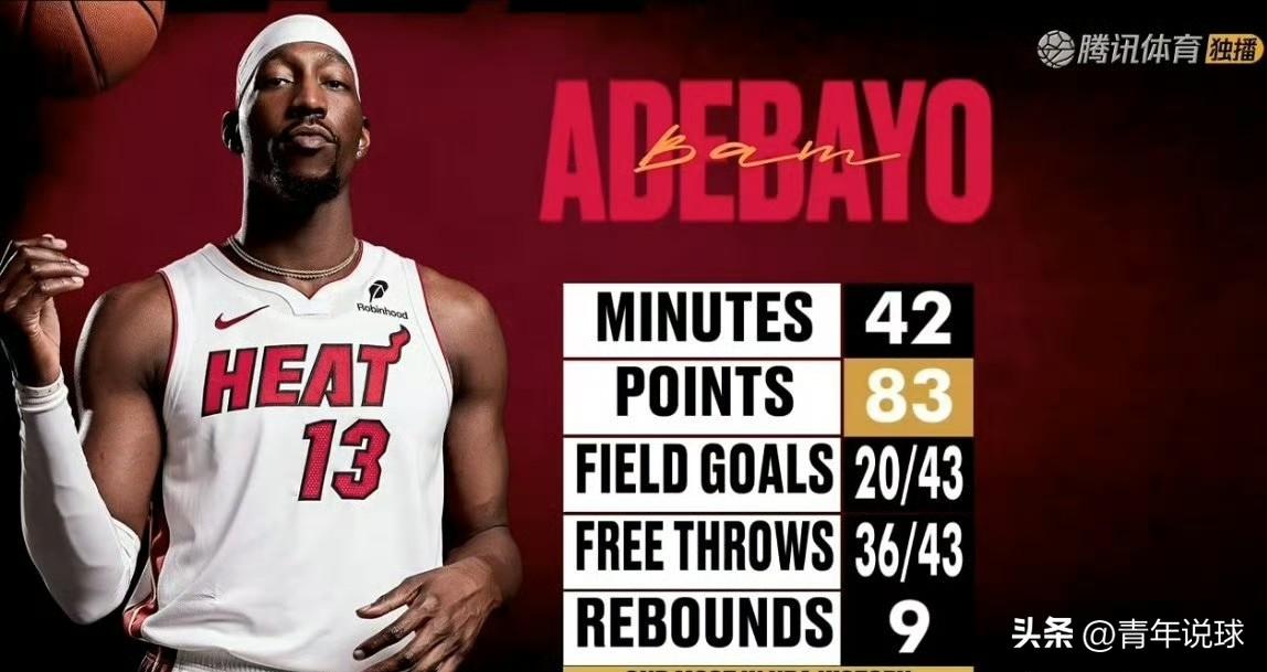 罚球王!阿德巴约罚球数创造了历史! 今天,热火队以150-129大胜奇才队。本场比赛,阿德巴约创造了多个历史记录,他全场得到83分9篮板3助攻。其中单场得分数超越了科比,排名历史第二位;单场罚球数为43个,超越了奥尼尔和霍华德的39次,升至历史第一位。热火队史的单场记录毫无疑问也被阿德巴约拿下。 本场比赛的最后5分钟,热火队开始全队为阿德巴约创造得分环境,将所有的进攻给到阿德巴约处理,后者在严防死守下很难完成运动战进球,但他频频制造杀伤,通过罚球达成了83分的成就!