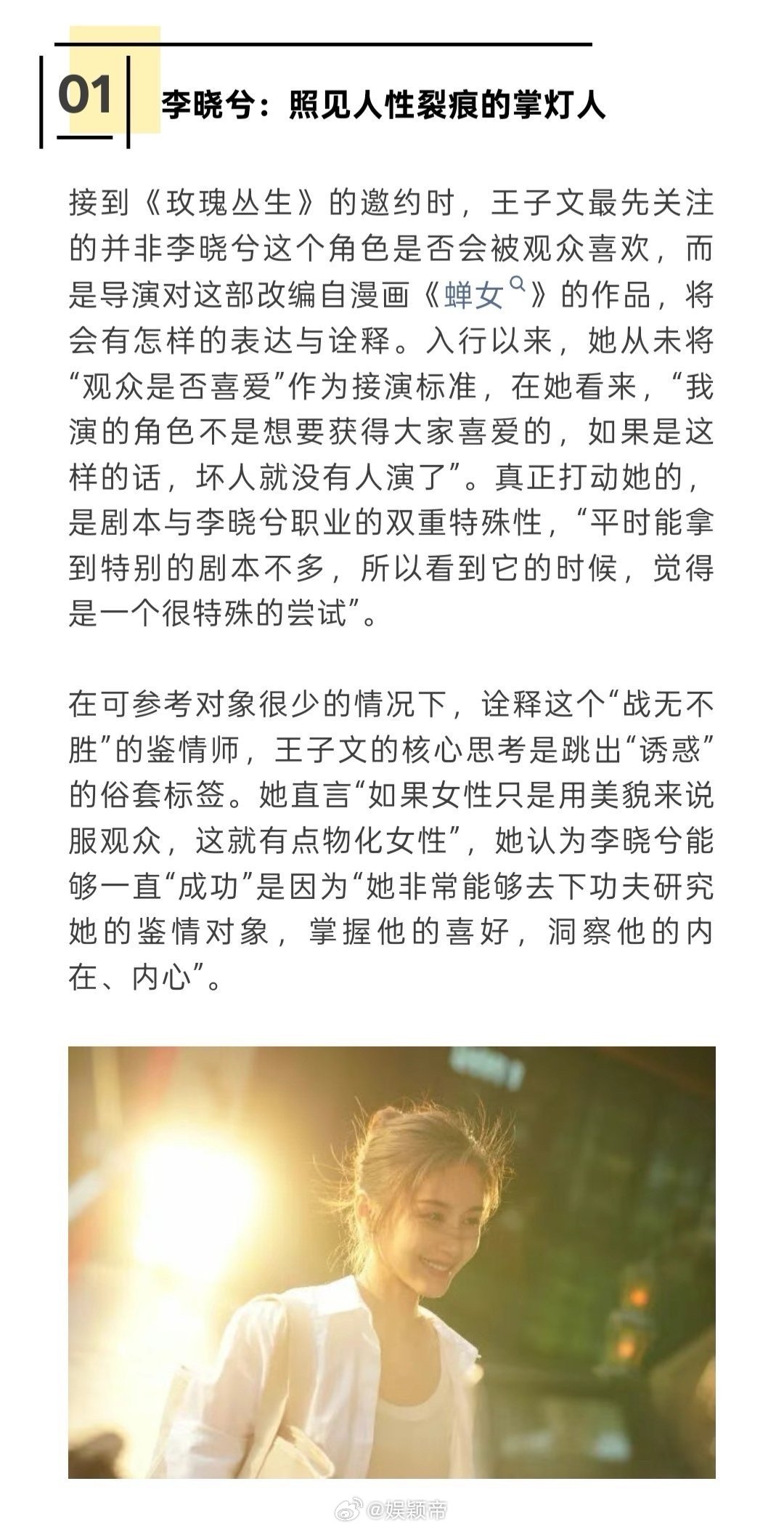 我以为长大后会自动变成王子文 小时候以为长大后自然就会变得知性从容,直到看见王子文的采访才懂,那种高智感是要用经历和思考去换的。她谈角色、谈人性、谈成长的每一句,都让人想划重点背诵。