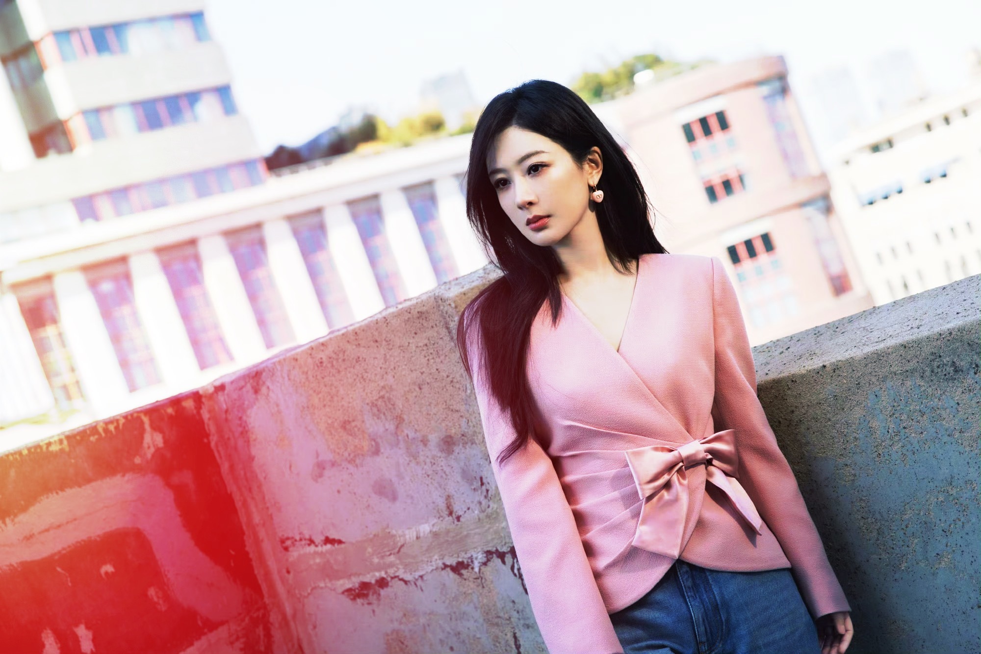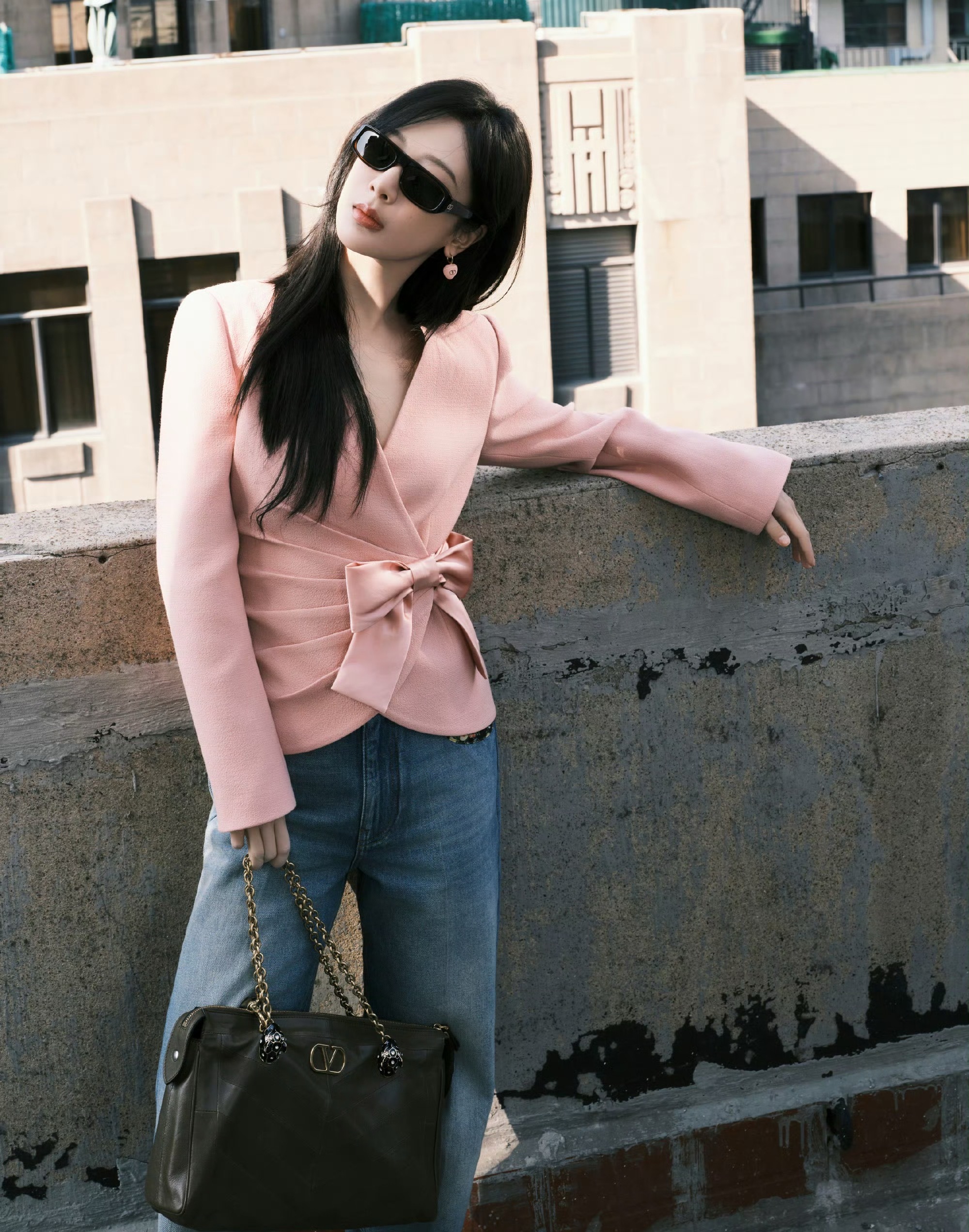 刘亦菲这条裤子挺养生,毕竟降温了肚脐眼必须护住啊