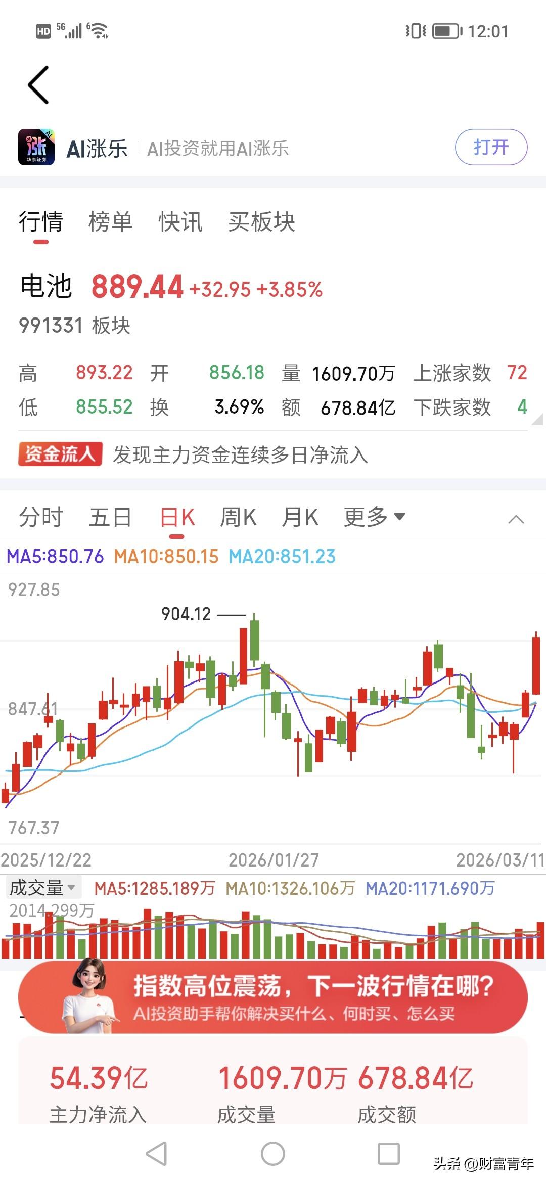 3天暴涨了10%,主力今天50亿买入电池,这就是金钱。!!! 主力这几天赚钱方向都是能源下手。。 所以银行保险尽管位置低,但主力不买。。 现在行情肯定在不断轮动, 就看怎么吃到肉了。!股票资金净流入 股市电力