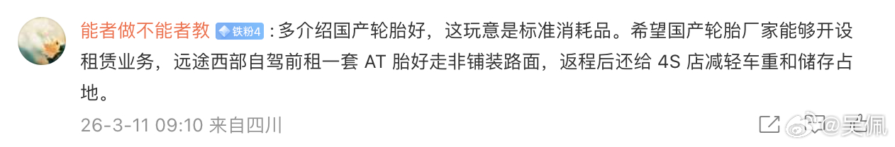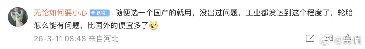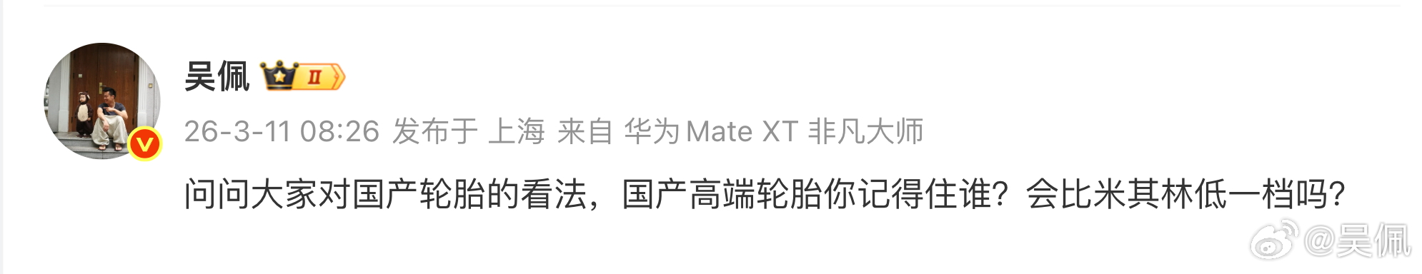 上午我发了一条问大家对“国产轮胎”的看法的微博(网页链接),大家的意见我都看了,再顺着这话题聊多两句:如果一台高端车,价格比别人贵,但是用上了一套国产轮胎,你认为是缺点吗?投个票吧,「缺点」/「不是缺点」。