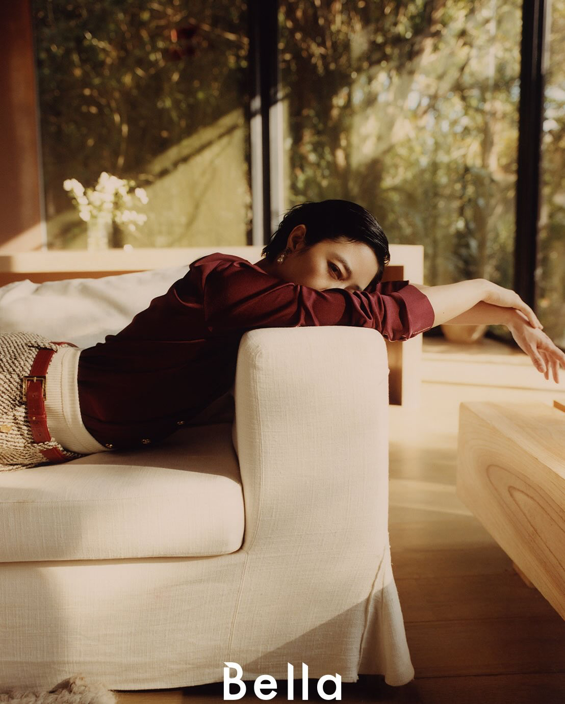 刘亦菲这条裤子挺养生,毕竟降温了肚脐眼必须护住啊