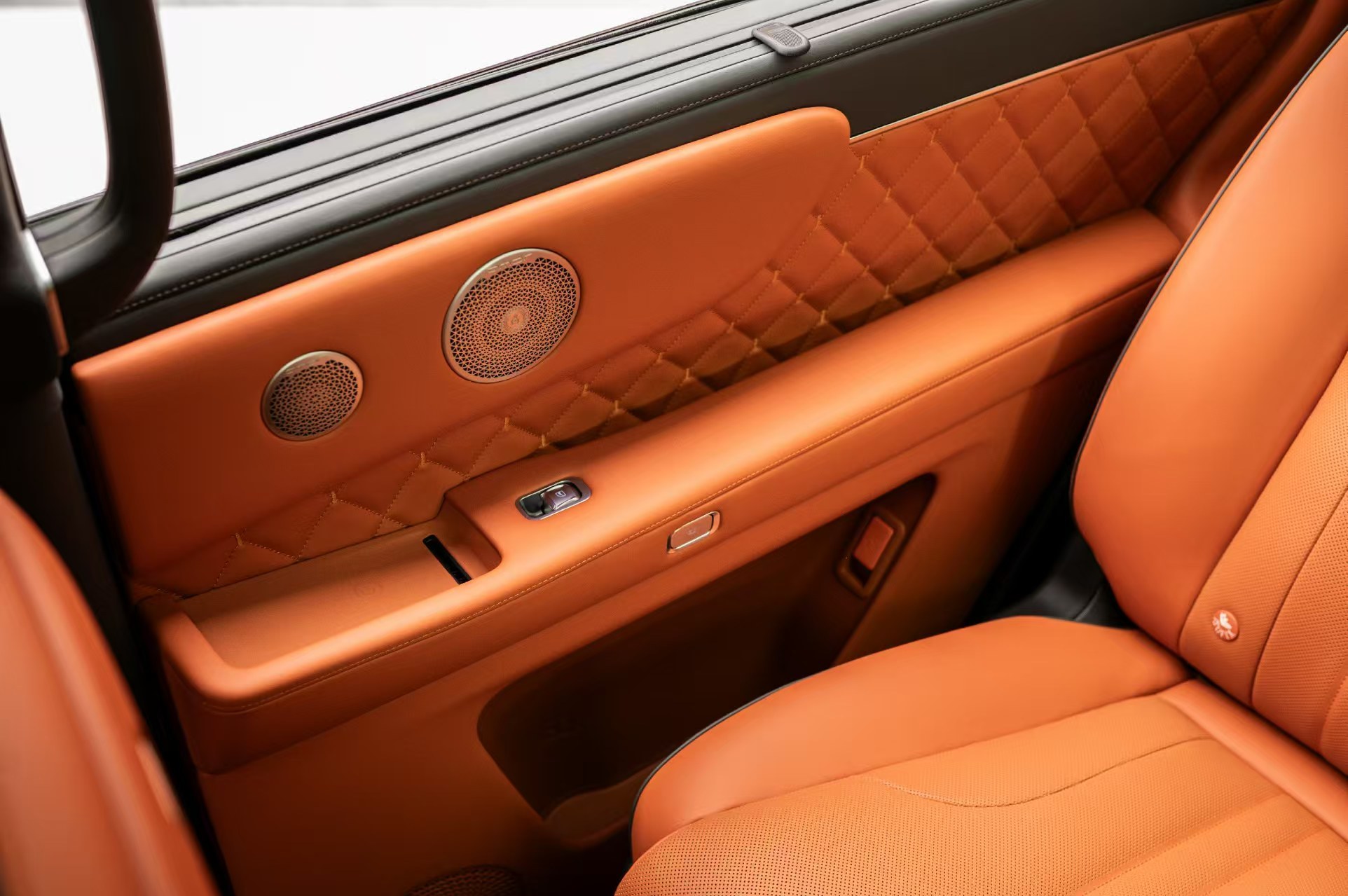 旗舰SUV产品,当然要讲细节,魏牌V9X全车配备31个稀土强磁扬声器,在副驾及二排两侧也布置了门板手机无线充电,全车4处50W无线快充,保证每一位乘客都照顾到位